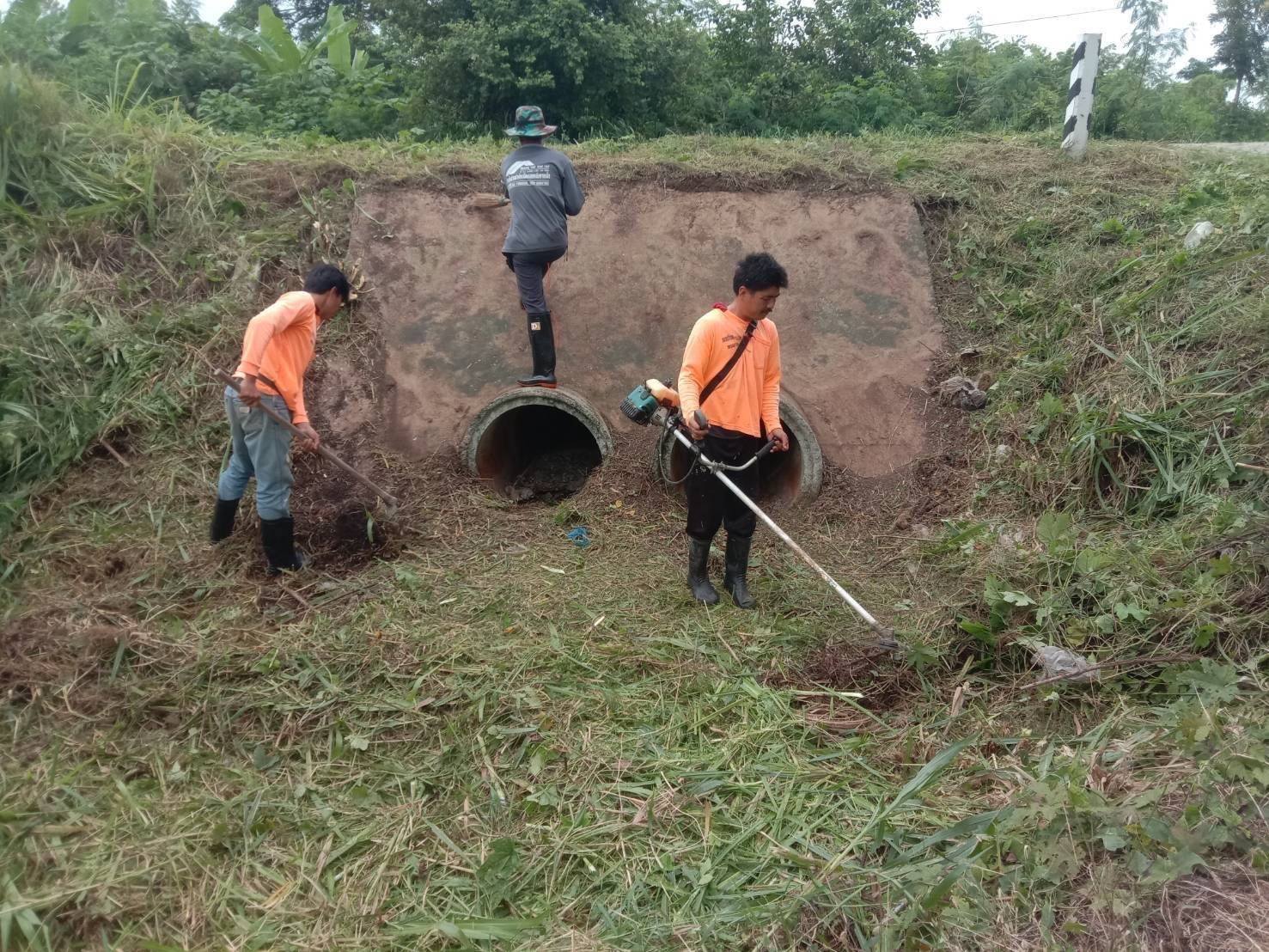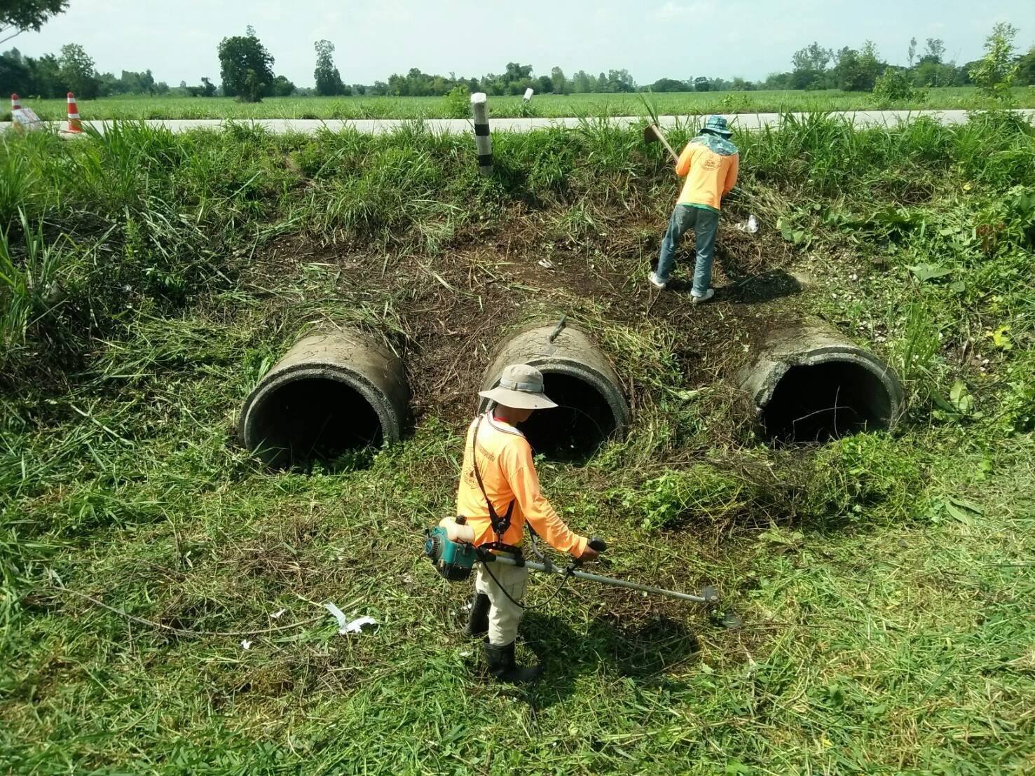 - ทำความสะอาดช่องระบายน้ำ ตัดหญ้า กำจัดวัชพืชที่ขวางทางระบายน้ำ ท่อลอด สะพาน