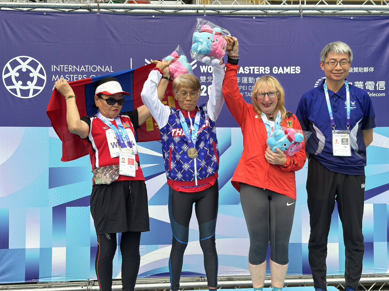 รุ่น 70-74 ปี หญิง สมสง่า บุญนอก คว้าเหรียญทอง วิ่ง 100 เมตร สถิติ 17.03 วินาที สามารถทำลายสถิติประเทศไทย