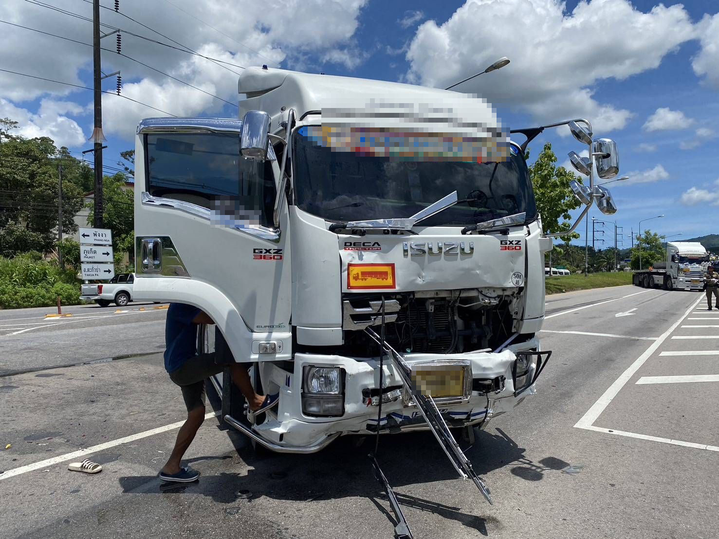 พบรถเทรลเลอร์ อีซูซุ สีขาว ป้ายทะเบียน สุราษฎร์ธานี ชนกับรถยนต์นั่งส่วนบุคคล นิสสัน สีดำ และรถยนต์กระบะ มิตซูบิชิ สีเทา พบว่ามีผู้บาดเจ็บรวม 4ราย และ มีติดอยู่ในรถ 3 ราย จึงประสานชุดปฏิบัติการกู้ภัยสำนักงาน ปภ.พังงา นำเครื่องมือตัดถ่างเข้าทำการช่วยเหลือผู้บาดเจ็บนำส่งโรงพยาบาลตะกั่วทุ่ง