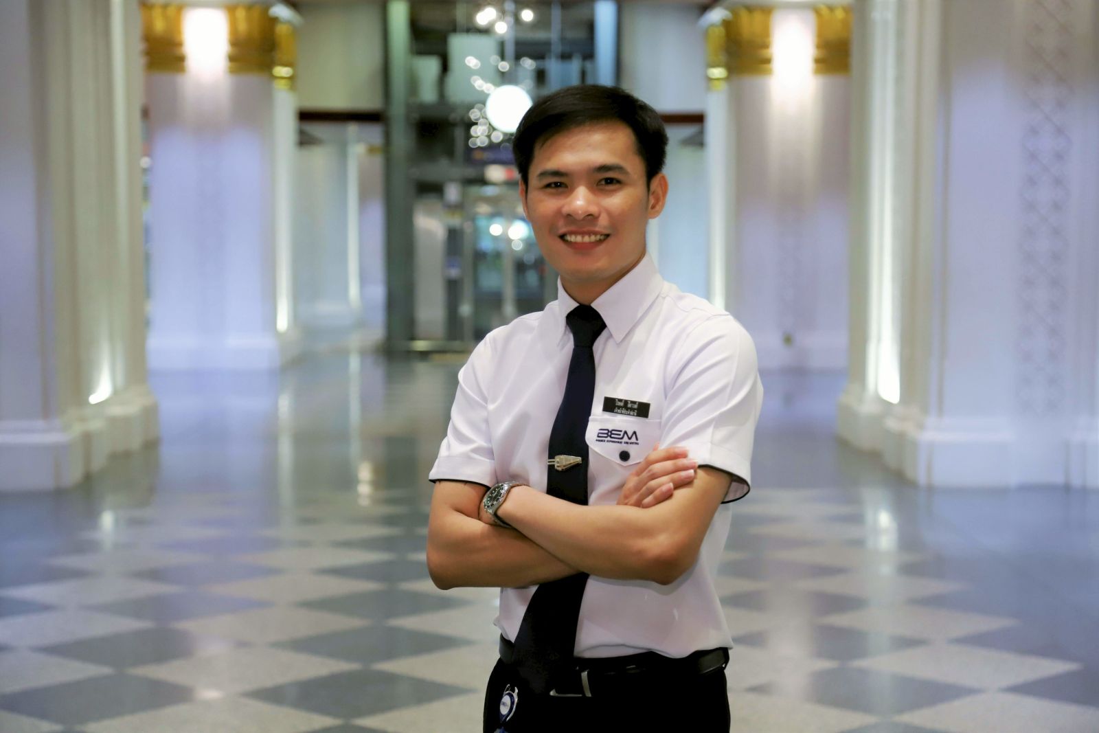 นางสาวมนต์มนัส บุญปราบ เจ้าหน้าที่ประจำสถานี MRT สามย่าน หนึ่งในทีมที่ได้รับหน้าที่นี้ เปิดเผยด้วยแววตาเปล่งประกายว่า “ดีใจและภูมิใจมากที่ได้เป็นส่วนหนึ่งของโครงการที่เปิดโอกาสให้เยาวชนได้เรียนรู้และเติบโต ในฐานะพี่เลี้ยงได้สอนให้น้องเข้าใจบทบาทและงานบริการผู้โดยสารเบื้องต้น แต่สิ่งสำคัญกว่านั้นคือการปลูกฝังวินัย ความรับผิดชอบ และการสื่อสารกับผู้คน ซึ่งเด็กที่เข้าร่วมโครงการได้เจอทั้งคนไทยและชาวต่างชาติ น้องบางคนมีทักษะเรื่องการสื่อสารตั้งแต่วันแรก บางคนอาจจะยังเขินอาย แต่พอผ่านไปสักระยะจึงเห็นว่ามีพัฒนาการของความกล้าพูด กล้าแสดงออกมากขึ้น ที่ผ่านมาเคยเทรนแค่พนักงานใหม่ที่เพิ่งเข้ามาทำงานกับ BEM ไม่เคยมีนักเรียนมาฝึกงานที่สถานีมาก่อน ทั้งสงสัยและเป็นห่วงว่าน้องๆ จะปรับตัวได้ไหม แต่เมื่อได้เห็นสิ่งที่เกิดขึ้นไม่ว่าจะเป็นความรับผิดชอบ ความมีน้ำใจ ดูแลผู้โดยสารด้วยความเคารพและเท่าเทียม ทำให้พี่เลี้ยงอย่างเราปลื้มใจมาก”