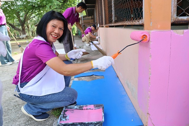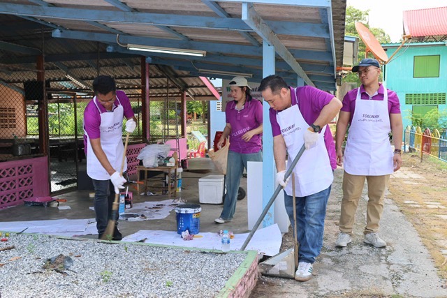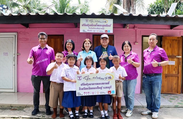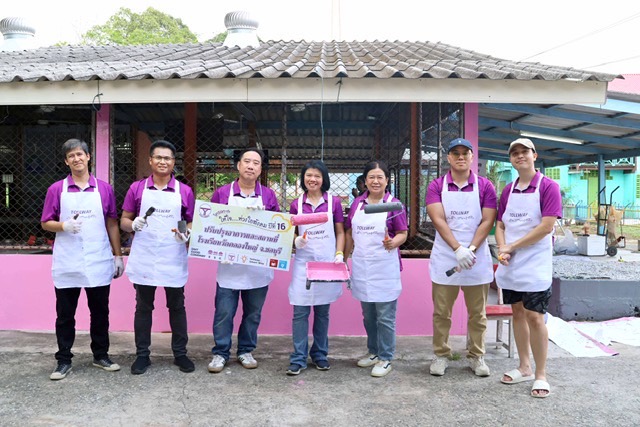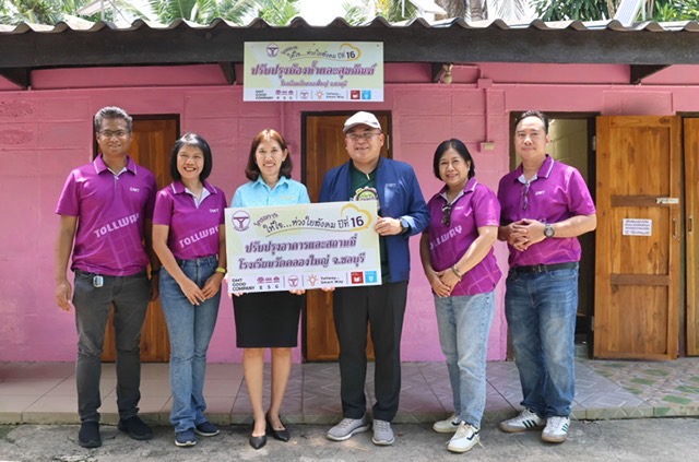 ดร.ศักดิ์ดา พรรณไวย (คนที่ 3 จากขวา) กรรมการผู้จัดการ บริษัท ทางยกระดับดอนเมือง จำกัด (มหาชน) หรือ DMT พร้อมด้วยคณะผู้บริหารบริษัทฯ ลงพื้นที่ทำกิจกรรมจิตอาสาพัฒนาชุมชนและสังคมสู่ความยั่งยืน ณ โรงเรียนวัดคลองใหญ่ อ.บ้านบึง จ.ชลบุรี ปรับปรุงสภาพแวดล้อมภายในโรงเรียน ประกอบด้วย การทาสีผนังอาคารเรียน ทำความสะอาดห้องน้ำและเปลี่ยนสุขภัณฑ์ห้องน้ำใหม่ พร้อมจัดตั้งจุดแยกขยะเพื่อส่งเสริมสิ่งแวดล้อมและสุขภาวะที่ดีให้กับนักเรียน ตามโครงการ “ให้ใจ ห่วงใยสังคม” ที่ทำมาอย่างต่อเนื่องเป็นปีที่ 16 โดยมีนางสาวชมภูนุช สุภาผล (คนที่ 3 จากซ้าย) ผู้อำนวยการโรงเรียน เป็นผู้แทนรับมอบ ทั้งนี้กิจกรรมดังกล่าวสอดคล้องกับเป้าหมายการพัฒนาที่ยั่งยืนของสหประชาชาติ (SDGs) เป้าหมายข้อที่ 4 การศึกษาที่มีคุณภาพ และเป้าหมายข้อที่ 6 การจัดการน้ำและสุขาภิบาล