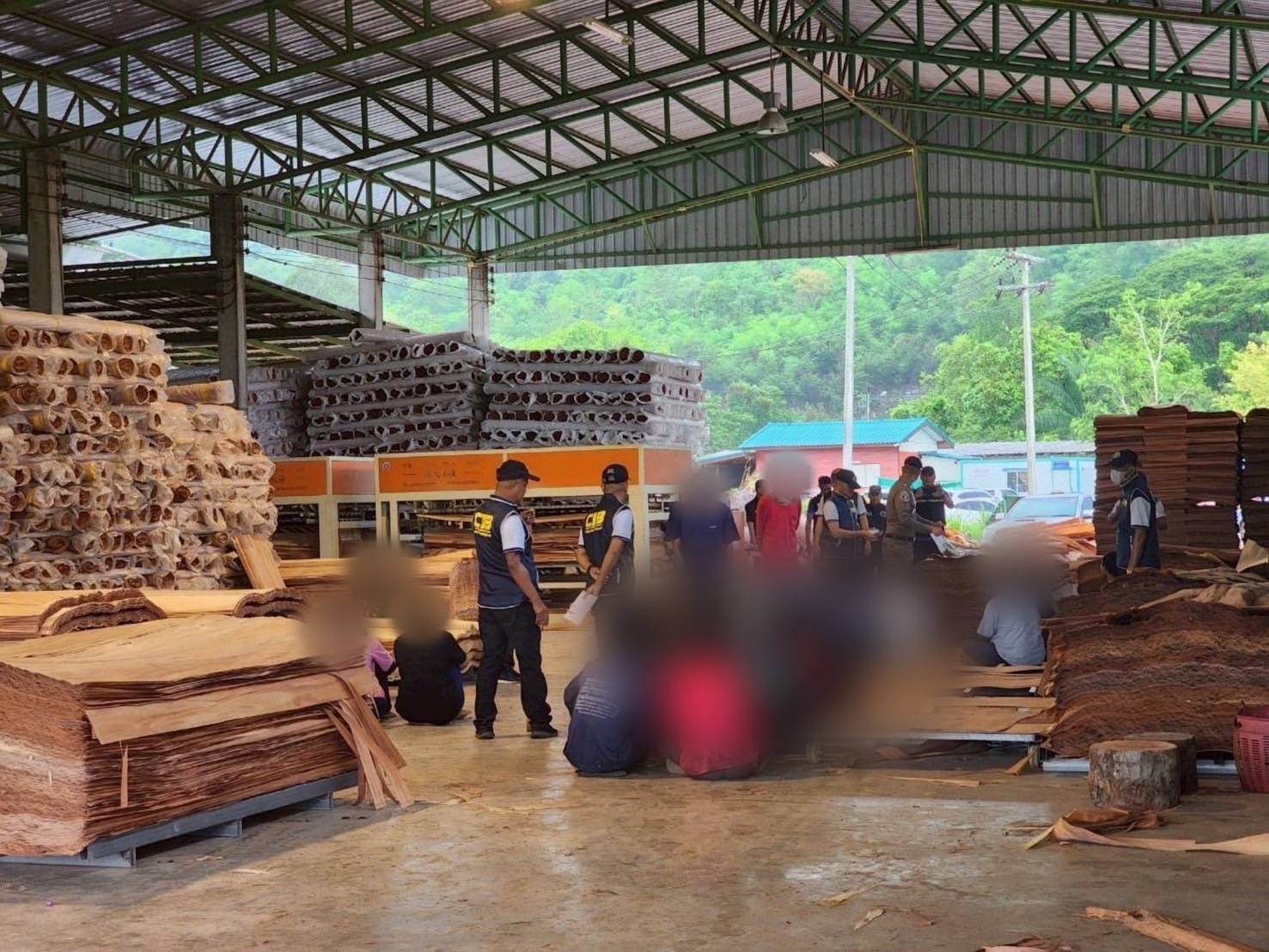 จากการสืบสวนและตรวจสอบข้อมูลพบว่า โรงงานดังกล่าวเป็นโรงแปรรูปไม้วีเนียร์ ซึ่งจดทะเบียนโดยชายไทยคนนึง แต่กลับปล่อยให้นอมินีทุนจีนเช่าและดำเนินกิจการแทน ในนาม บริษัทฯ โดยมีการจ่ายค่าเช่าเป็นรายเดือน ซึ่งเข้าข่ายหลีกเลี่ยงกฎหมายว่าด้วยคนต่างด้าว และอาจมีพฤติกรรมเข้าข่ายแฝงการถือครองกิจการโดยชาวต่างชาติอย่างไม่ถูกต้อง ผลการตรวจค้นภายในโรงงานพบเครื่องเลื่อยโซ่ยนต์ 5 เครื่อง ไม่มีหลักฐานการได้รับอนุญาตจากนายทะเบียน รวมถึงพบว่า ดำเนินกิจการโรงงานที่เป็นอันตรายต่อสุขภาพโดยไม่มีใบอนุญาต และไม่จัดทำบัญชีไม้ตามที่กฎหมายกำหนด จึงได้ทำการตรวจยึดของกลางทั้งหมด และแจ้งข้อกล่าวหาผู้ที่ร่วมกันกระทำความผิดที่อยู่ในที่เกิดเหตุ