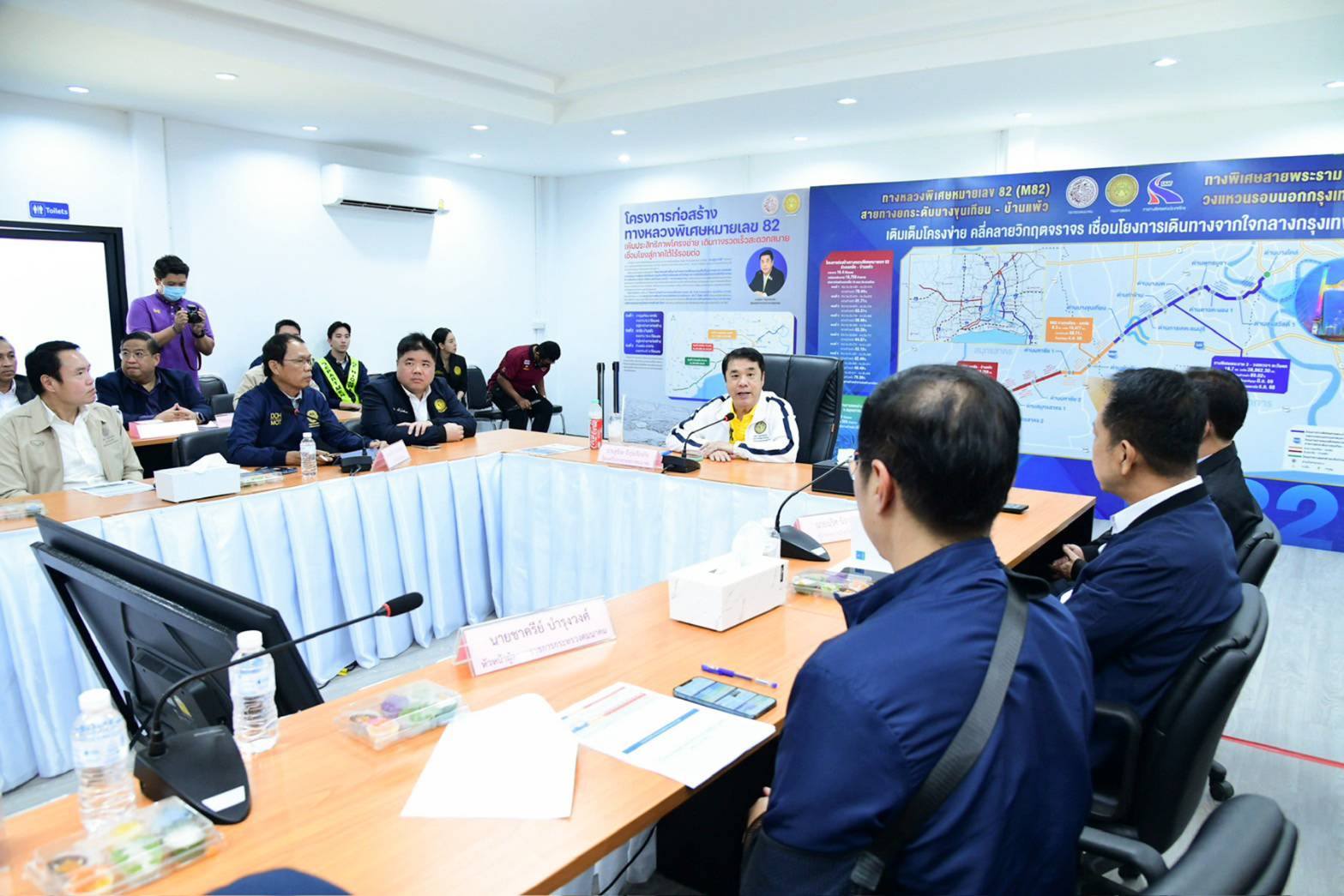 วันนี้ (23 พฤษภาคม 2568) นายสุริยะ จึงรุ่งเรืองกิจ รองนายกรัฐมนตรีและรัฐมนตรีว่าการกระทรวงคมนาคม ลงพื้นที่ตรวจสอบความคืบหน้าโครงการก่อสร้างทางหลวงพิเศษหมายเลข 82 (M82) สายทางยกระดับบางขุนเทียน - บ้านแพ้ว ช่วงแยกต่างระดับบางขุนเทียน - เอกชัย พร้อมยืนยันว่าโครงการบนถนนพระราม 2 จะแล้วเสร็จภายในปี 2568 อย่างแน่นอน โดยขณะนี้ความก้าวหน้าของงานโยธาภาพรวมอยู่ที่ร้อยละ 82 พร้อมกำชับให้ทุกหน่วยงานที่เกี่ยวข้องเพิ่มมาตรการความปลอดภัย โดยเฉพาะการติดตั้งระบบตรวจจับการยืดตัวของโครงสร้างเหล็ก (SHM) เพื่อป้องกันอุบัติเหตุซ้ำรอยในอนาคต