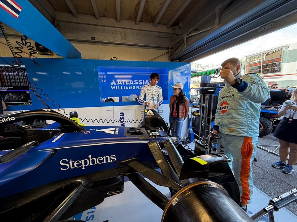 จากนั้น ได้เยี่ยมชมและให้กำลังใจ นายอเล็กซ์ อัลบอน อังศุสิงห์ (Mr. Alex Albon Ansusinha) นักแข่งรถ Formula 1 ลูกครึ่งไทย - อังกฤษ วัย 29 ปี โดยในปัจจุบันเป็นนักแข่งของทีม Williams Racing