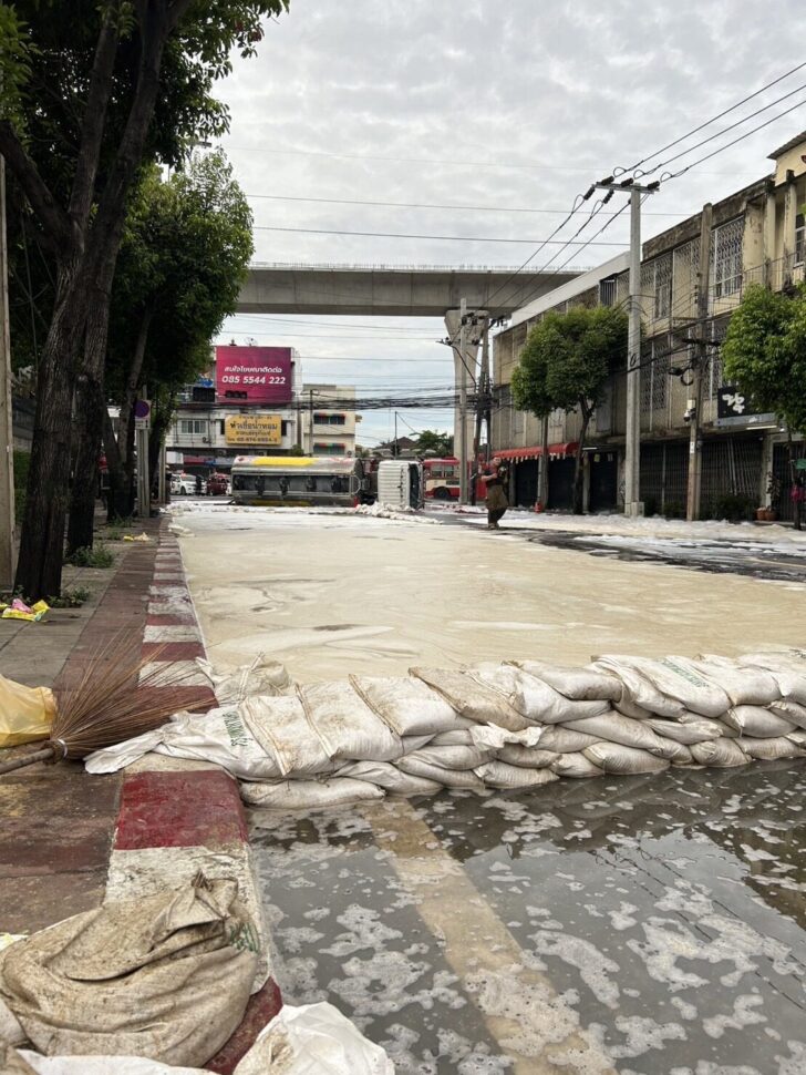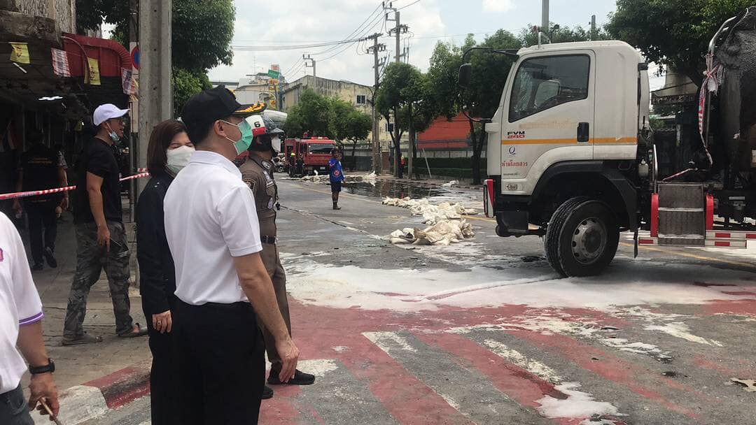 นายดลจิตร์ เสรีรักษ์ ผู้อำนวยการเขตราษฎร์บูรณะ พร้อมด้วยนายปรีดา โอดลี หัวหน้าฝ่ายปกครอง นายนฤพล เวชกรบริรักษ์ หัวหน้าฝ่ายเทศกิจ นำเจ้าหน้าที่เขต ลงพื้นที่จุดที่รถบรรทุกน้ำมันพลิกตะแคง และมีการอพยพชาวบ้านกว่า 200 คน ที่พักอาศัยใกล้เคียงจุดเกิดเหตุให้ไปพักยังที่ชั่วคราวที่สำนักงานเขตราษฎร์บูรณะจัดไว้ให้