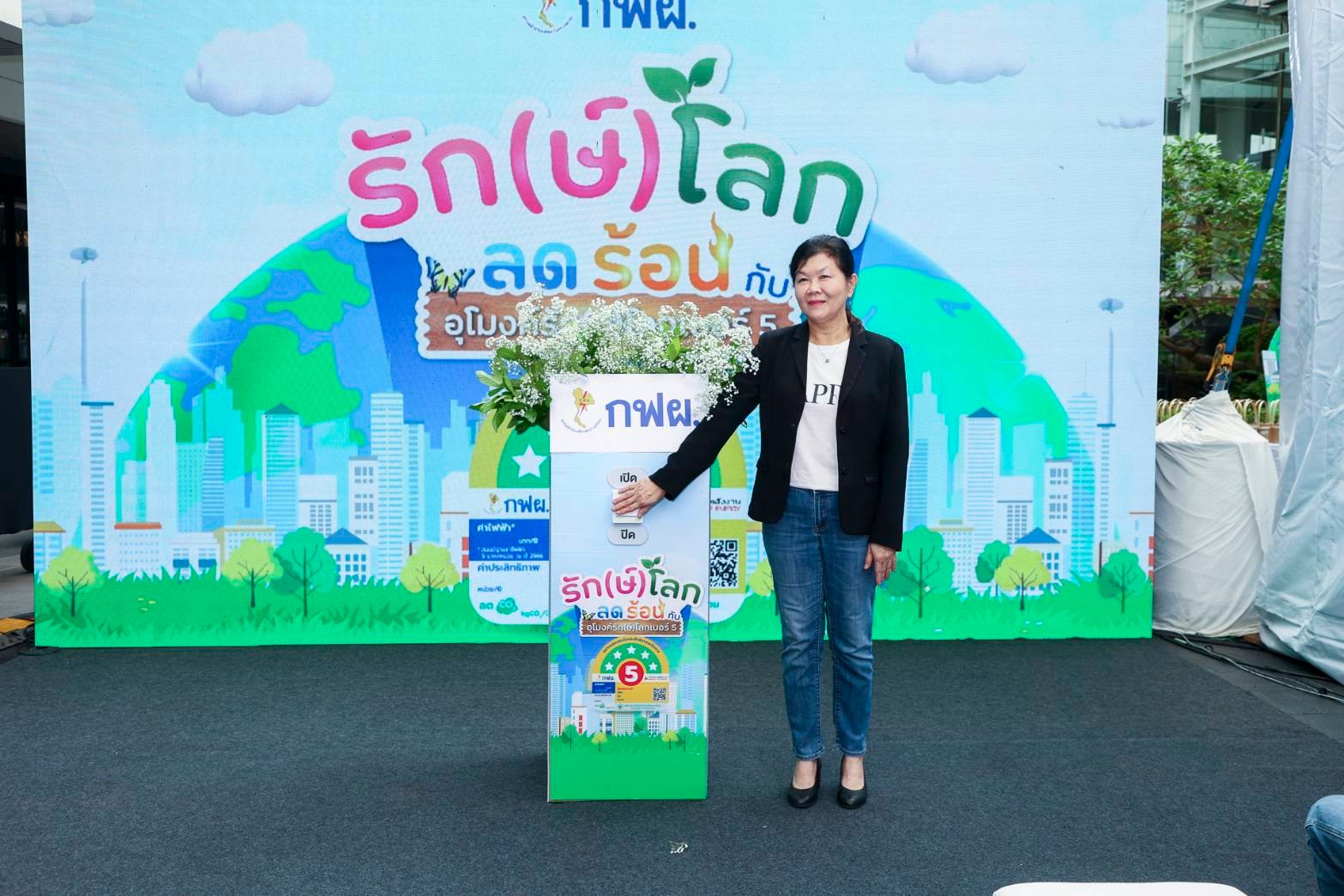 วานนี้ (24 พฤษภาคม 2568) นางสาวรัชดาพร เสียงเสนาะ ผู้อำนวยการฝ่ายสื่อสารและประชาสัมพันธ์องค์การ การไฟฟ้าฝ่ายผลิตแห่งประเทศไทย (กฟผ.) เปิดกิจกรรม กฟผ. รัก(ษ์)โลก ลดร้อน กับอุโมงค์รัก(ษ์)โลกเบอร์ 5 รณรงค์ให้ประชาชนเลือกซื้อเลือกใช้ผลิตภัณฑ์เครื่องใช้ไฟฟ้าที่ติดฉลากประหยัดไฟฟ้าเบอร์ 5 ส่งเสริมการปรับเปลี่ยนพฤติกรรม 5ป. ในการใช้ไฟฟ้าอย่างมีประสิทธิภาพ “ปิด ปรับ ปลด เปลี่ยน ปลูก” ณ ลานเมกา ฟู้ดวอล์ค ห้างสรรพสินค้าเมกาบางนา จ.สมุทรปราการ