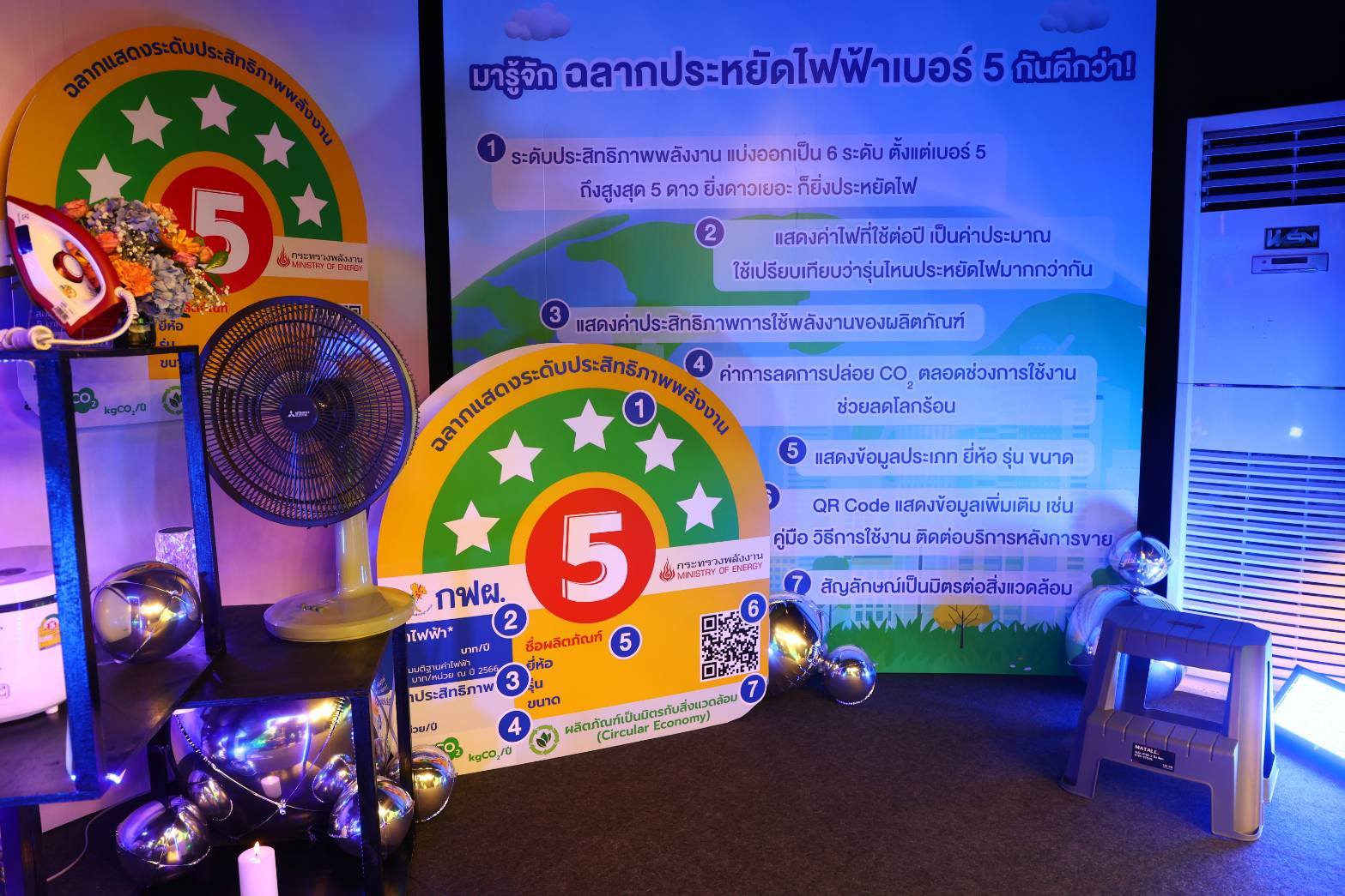 กิจกรรมครั้งนี้เป็นส่วนหนึ่งในการส่งเสริมการใช้พลังงานอย่างมีประสิทธิภาพผ่านการเลือกใช้ผลิตภัณฑ์เครื่องใช้ไฟฟ้าที่ติดฉลากประหยัดไฟฟ้าเบอร์ 5 แบบใหม่ห้าดาว ซึ่งได้รับการพัฒนาประสิทธิภาพด้านพลังงาน และรักษ์สิ่งแวดล้อมมากขึ้น เพื่อตอบโจทย์การประหยัดค่าใช้จ่ายให้กับประชาชนและใช้พลังงานอย่างมีประสิทธิภาพ มุ่งสู่การบรรลุเป้าหมายความเป็นกลางทางคาร์บอนของประเทศไทยในปี พ.ศ.2573