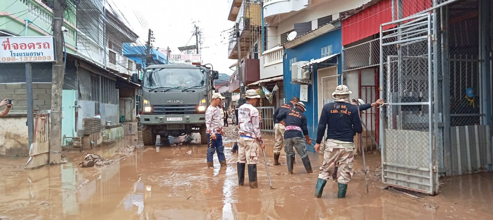 จากรายงานพบว่า สถานการณ์พื้นที่ อำเภอแม่สาย มีพื้นที่ถนนบางส่วนได้รับความเสียหาย โดยหน่วยงานทหาร และฝ่ายปกครอง ได้ระดมบิ๊กแบ็คเข้าควบคุมสถานการณ์แล้วขณะที่ ทหารกรมการทหารช่าง ได้เร่งดำเนินการก่อสร้างคันระบายน้ำพื้นที่ชุมชนอำเภอแม่สาย คาดว่าจะแล้วเสร็จภายในเดือนมิถุนายน 2568 นี้ จึงทำให้การระบายน้ำยังทำได้ไม่เต็มประสิทธิภาพ แต่เมื่อคันระบายน้ำที่กำลังก่อสร้างแล้วเสร็จจะทำให้การระบายน้ำในพื้นที่อำเภอแม่สายเป็นไปอย่างมีประสิทธิภาพมากขึ้น