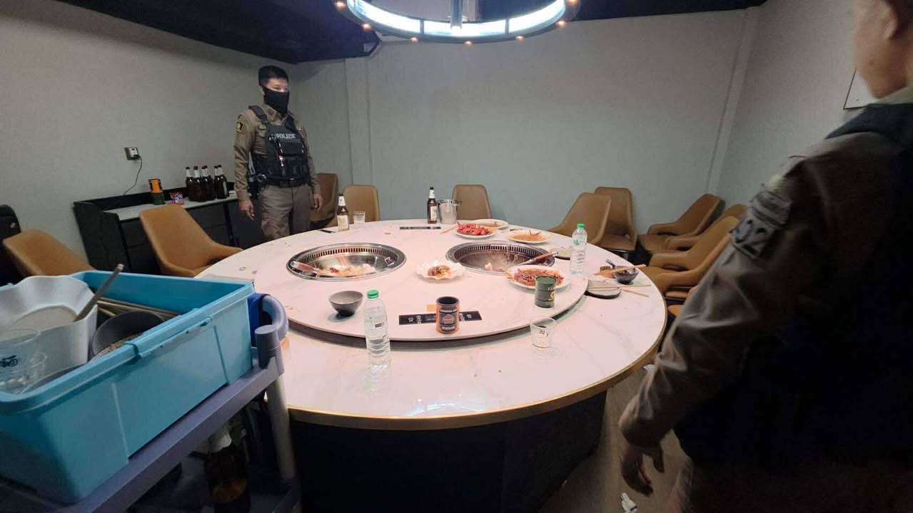ที่เกิดเหตุภายในห้องอาหาร VIP 6 บนชั้น 5 พบมีร่องรอยการต่อสู้ ซึ่งโต๊ะหม้อไฟทรงกลมและเก้าอี้กระจัดกระจายไปทั่วห้อง บริเวณพื้นและผนังพบกองเลือดติดอยู่ ส่วนที่โต๊ะวางของพบขวดเบียร์ที่ดื่มแล้วเป็นจำนวนมาก ส่วนตัวผู้บาดเจ็บ เป็นชายชาวจีน อายุ 40 ปี วิ่งหนีตายลงมาขอความช่วยเหลือกับพนักงานร้าน สภาพไม่สวมเสื้อ ถูกอาวุธมีดแทงเข้าที่ชายโครงซ้ายกู้ภัยฯ จึงปฐมพยาบาลก่อนพาตัวส่ง รพ.พัทยา-เมโมเรียล