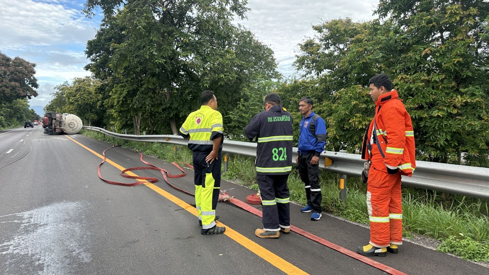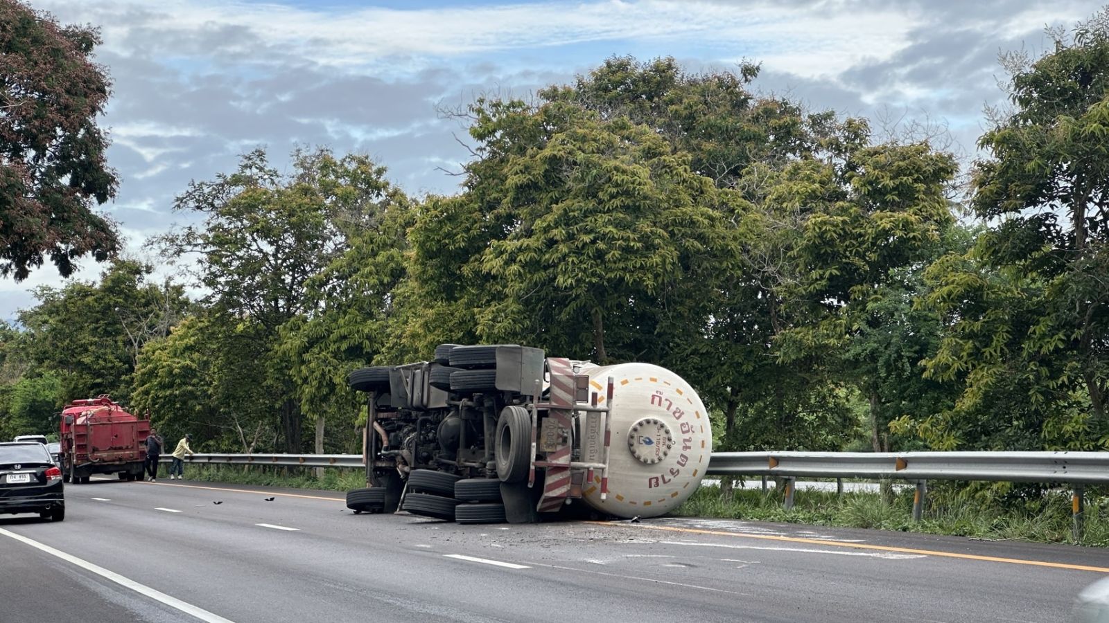 เช้าวันนี้ (26 พ.ค.68) เวลาประมาณ 06.00 น. เกิดอุบัติเหตุรถบรรทุกก๊าซ LPG ปริมาณ 10 ตัน พลิกคว่ำบน ถ.เพชรเกษม ขาล่องใต้ ช่วง กม. ที่ 320 พื้นที่บ้านสวนขวัญ ต.คลองวาฬ อำเภอเมือง จ.ประจวบคีรีขันธ์ ห่างจากแยกทางเข้าด่านสิงขร ประมาณ 2 กิโลเมตร แต่ไม่มีก๊าซรั่วไหล ขณะนี้เจ้าหน้าที่อยู่ระหว่างเคลียร์เส้นทาง โดยจะใช้รถเครนยกรถบรรทุกก๊าซเพื่อเปิดเส้นทาง พร้อมเตรียมรถฉีดโฟม และรถบรรทุกน้ำเพื่อฉีดเลี้ยงในระหว่างปฏิบัติการเพื่อป้องกันเหตุร้าย และกันพื้นที่ปลอดภัยบริเวณโดยรอบรัศมี 250 เมตร โดยมี นายประทีป บริบูรณ์รัตน์ รองผู้ว่าราชการจังหวัดฯ คอยบัญชาการเหตุการณ์