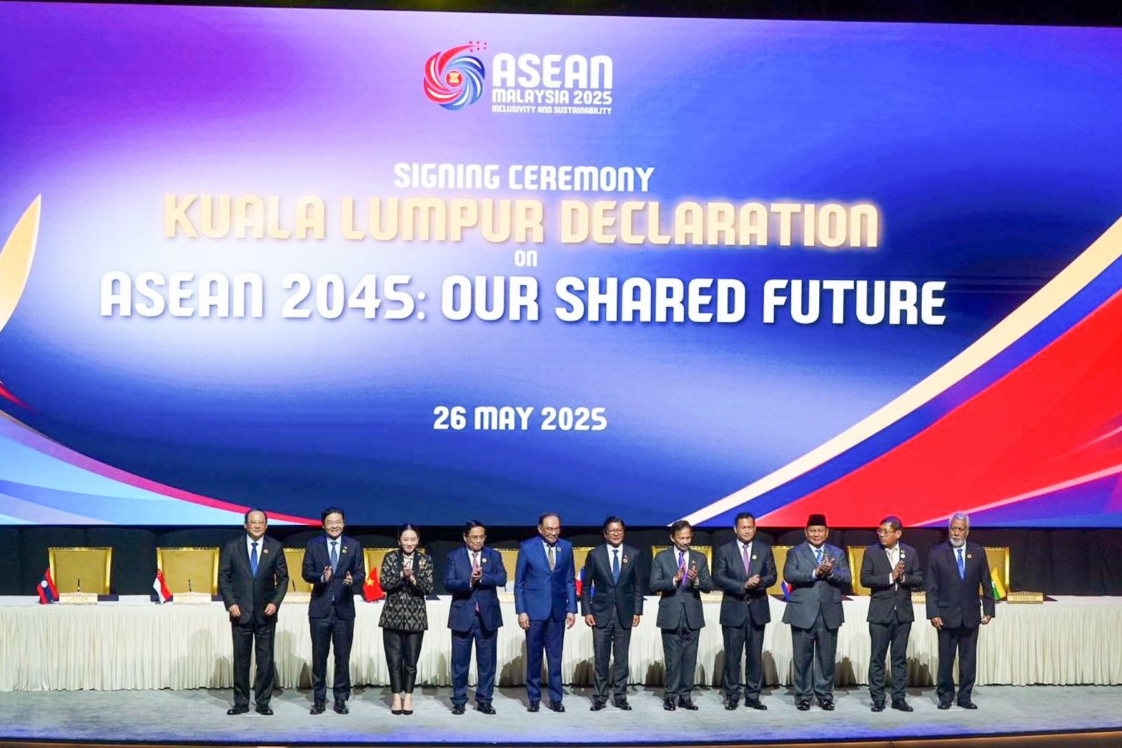 นายกฯ แพทองธาร พร้อมผู้นำอาเซียน ร่วมพิธีลงนาม “ปฏิญญากรุงกัวลาลัมเปอร์ว่าด้วยอาเซียน 2045: วางอนาคตร่วมกันของเรา” รับรองร่างวิสัยทัศน์ประชาคมอาเซียน ค.ศ. 2045
