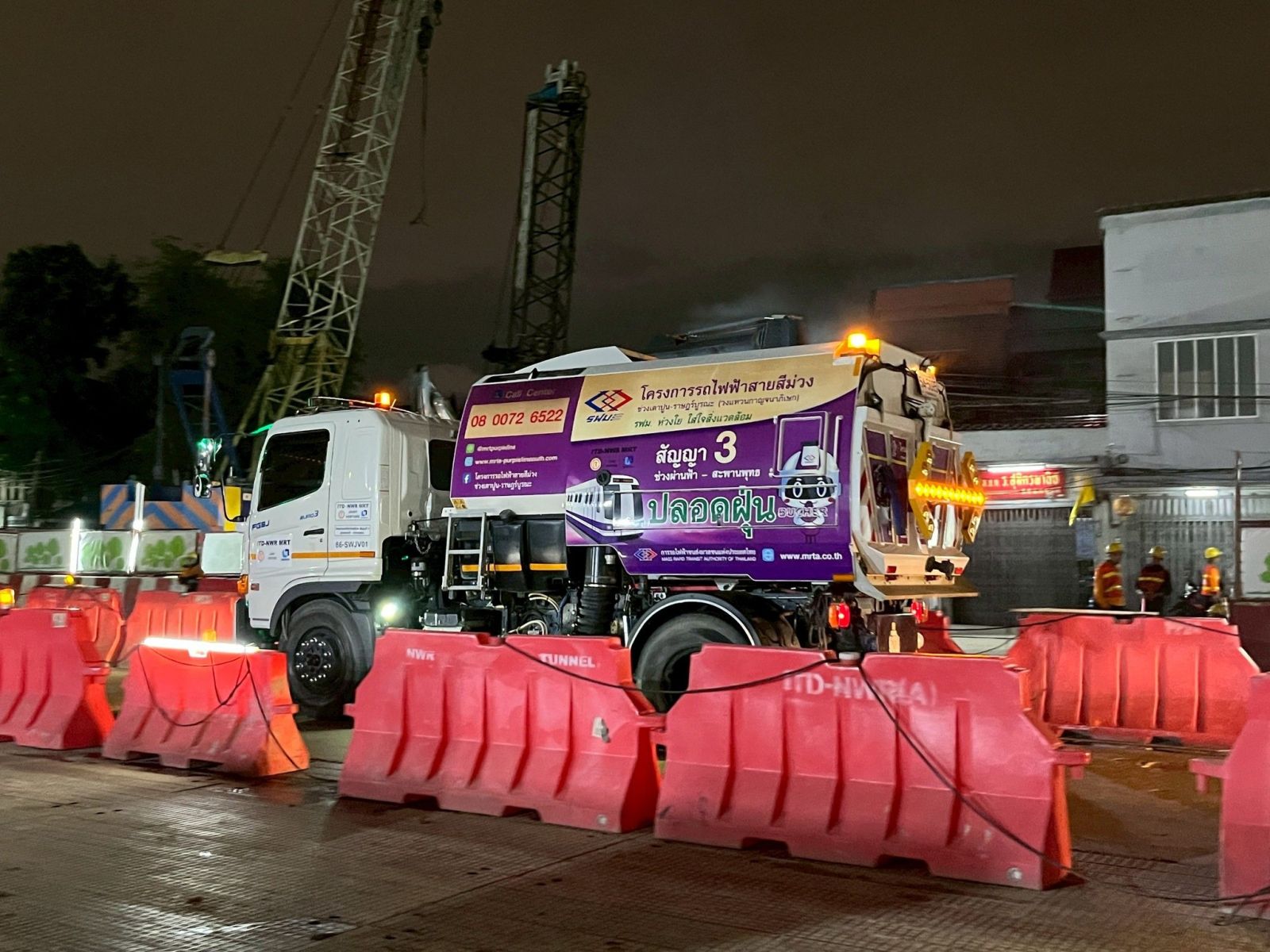 รฟม. ตรวจติดตามการดำเนินงานลดผลกระทบด้านสิ่งแวดล้อมในช่วงเวลากลางคืน การก่อสร้างโครงการรถไฟฟ้าสายสีม่วง ช่วงเตาปูน - ราษฎร์บูรณะ (วงแหวนกาญจนาภิเษก)
