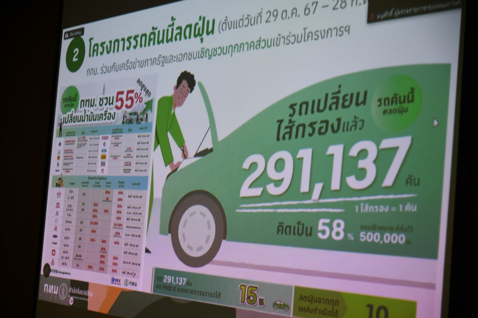 โครงการ "รถคันนี้ลดฝุ่น" มีรถเข้าร่วมเปลี่ยนไส้กรองแล้วกว่า 2.9 แสนคัน (จากเป้า 5 แสนคัน)