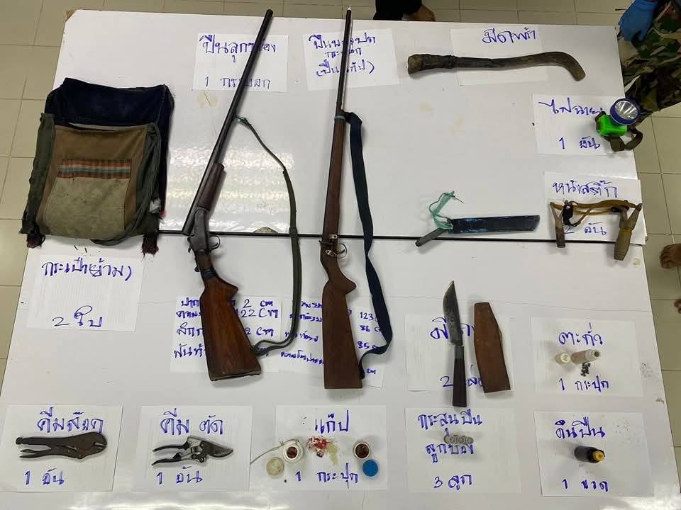 ทั้งนี้ เจ้าหน้าที่ได้ร่วมกันพิจารณาแล้วเห็นว่า ผู้ต้องหาทั้งสอง มีความผิดฐานพกพาอาวุธปืนและอุปกรณ์ล่าสัตว์เข้าพื้นที่อุทยานโดยไม่ได้รับอนุญาต เป็นความผิดตาม พ.ร.บ.อุทยานแห่งชาติ พ.ศ.2562 และกฎหมายเกี่ยวกับอาวุธปืน อีกทั้งยังมีพฤติกรรมการหลบหนี ขัดขวางการจับกุมของพนักงานเจ้าหน้าที่ ตลอดจนใช้อาวุธมีดวิ่งไล่ทำร้ายเจ้าหน้าที่จนได้รับบาดเจ็บ เป็นการกระทำที่มีเจตนาถึงการเอาชีวิตซึ่งเป็นความผิดตามประมวลกฎหมายอาญา จึงได้จัดทำบันทึกพร้อมเอกสารหลักฐาน และนำตัวผู้ถูกจับ อุปกรณ์ในการกระทำความผิด เข้าแจ้งความต่อพนักงานสอบสวนสถานีตำรวจภูธรองค์พระ จังหวัดสุพรรณบุรี เพื่อดำเนินการตามกฎหมายที่เกี่ยวข้องและติดตามตัวนายถาวรมาดำเนินคดีต่อไป