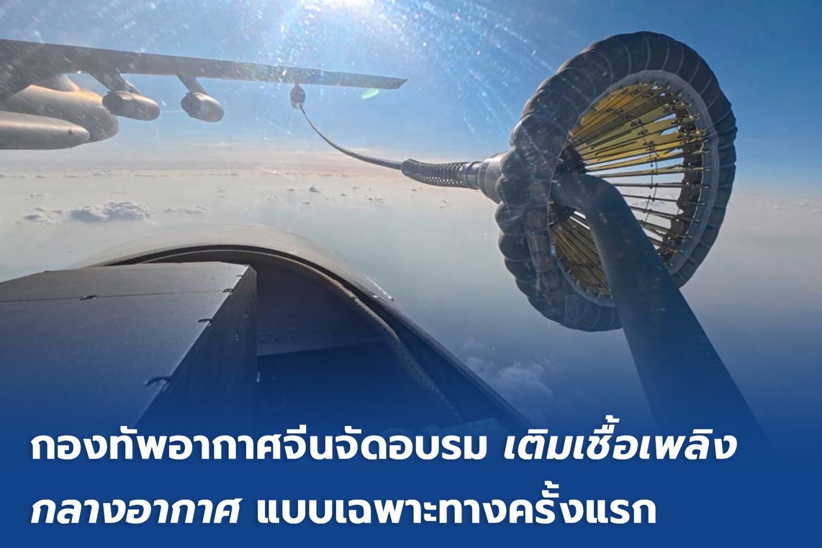 31 พฤษภาคม 2568 สำนักข่าว ซินหัว รายงาน เมื่อไม่นานนี้ กองทัพอากาศแห่งกองทัพปลดแอกประชาชนจีน (PLA) ได้จัดการฝึกอบรม "เติมเชื้อเพลิงกลางอากาศ" แบบเฉพาะทาง ณ สถาบันการบินสือเจียจวง เพื่อส่งเสริมการฝึกอบรมด้านการรบของนักเรียนนายเรืออากาศให้ก้าวหน้าไปอีกขั้น