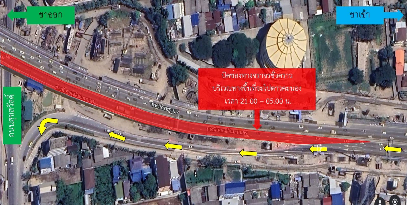 ทั้งนี้ กทพ. ขออภัยในความไม่สะดวกมา ณ ที่นี้และขอความร่วมมือผู้ใช้ทางโปรดสังเกตป้ายเตือนและปฏิบัติตามเครื่องหมายจราจรอย่างเคร่งครัด เพื่อความปลอดภัยของทุกท่าน หากมีข้อเสนอแนะ สามารถติดต่อสอบถามได้ที่ 02-405-4896 ตั้งแต่ 08.00-19.00 และ 062-912-6211 ตลอด 24 ชั่วโมง