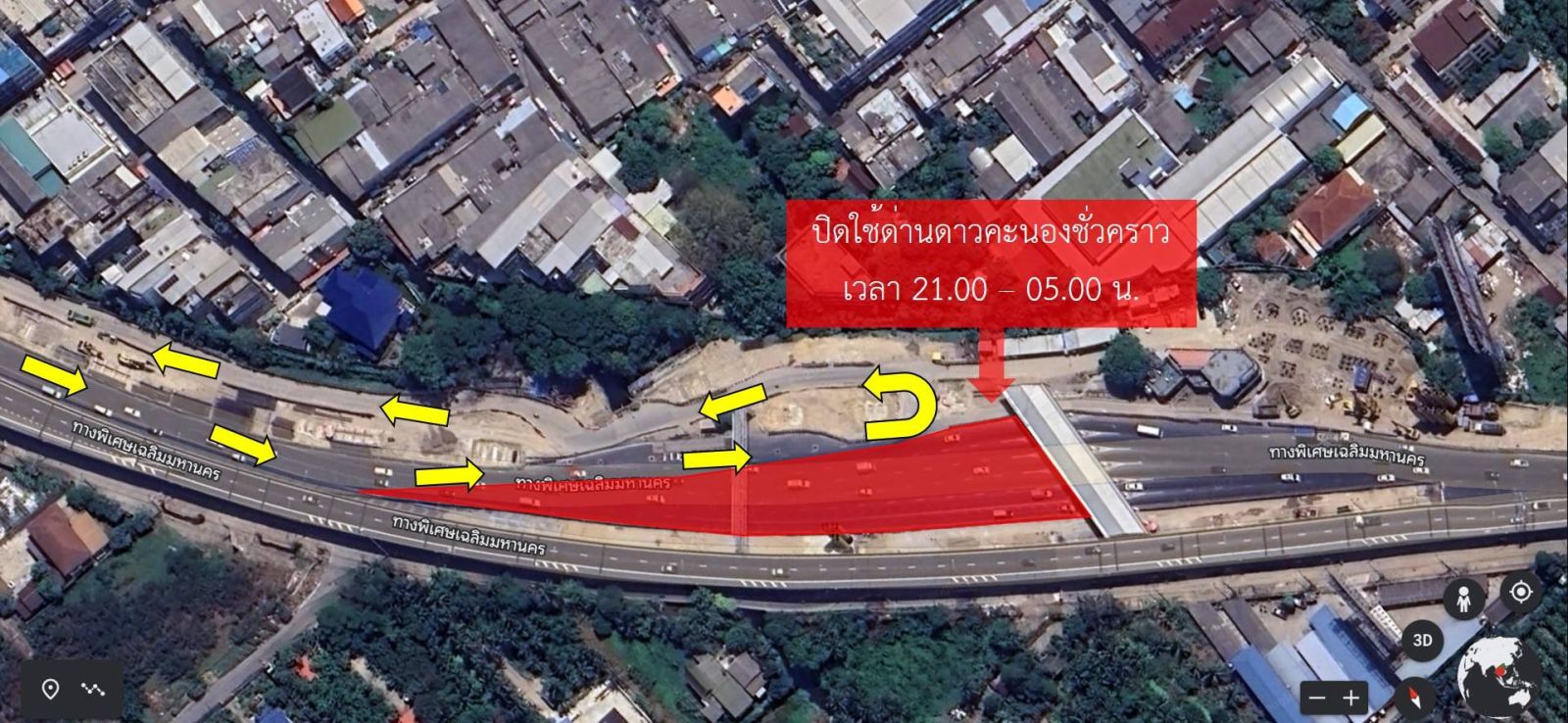 การทางพิเศษแห่งประเทศไทย (กทพ.) กระทรวงคมนาคมได้ว่าจ้าง กิจการร่วมค้า ไอทีดี-วีซีบี (ITD-VCB Joint Venture) ประกอบด้วย บริษัท อิตาเลียนไทย ดีเวล๊อปเมนต์ จำกัด (มหาชน) และบริษัท วิจิตรภัณฑ์ก่อสร้าง จำกัด เป็นผู้รับจ้างดําเนินการก่อสร้าง โครงการทางพิเศษสายพระราม3 – ดาวคะนอง - วงแหวนรอบนอกกรุงเทพมหานครด้านตะวันตกสัญญาที่ 3 แจ้งปิดเบี่ยงการจราจรชั่วคราว บนทางพิเศษเฉลิมมหานคร เพื่อดำเนินการติดตั้งคานขวางโครงการทางพิเศษสายพระราม 3 - ดาวคะนอง - วงแหวนรอบนอกฯ (ด้านตะวันตก) สัญญาที่ 3 ตั้งแต่วันที่ 1 มิถุนายน - 15 กรกฎาคม 2568 เฉพาะช่วงเวลา 21.00 - 05.00 น. รวม 2 จุด ดังนี้