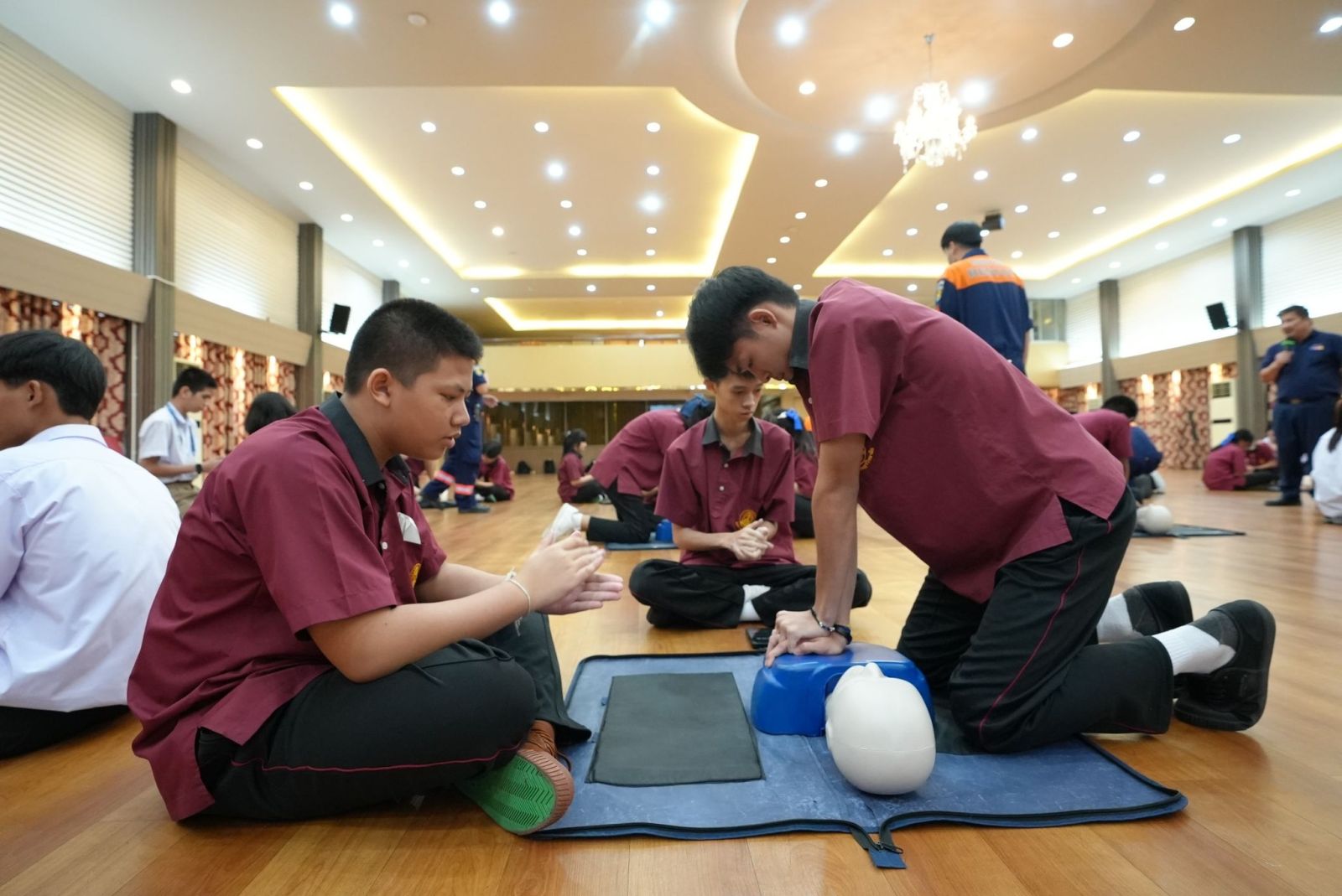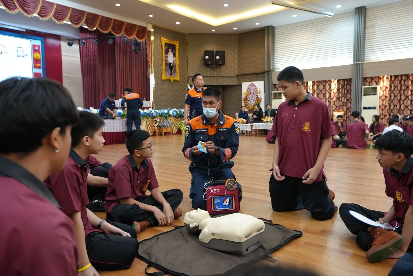 โดยมีเจ้าหน้าที่ฝ่ายรักษาความปลอดภัยและกู้ภัย รฟม. เป็นวิทยากรในการอบรม โดยโครงการดังกล่าวเป็นการอบรมเกี่ยวกับการช่วยฟื้นคืนชีพเบื้องต้น (Cardiopulmonary Resuscitation : CPR) การใช้เครื่องกระตุกคลื่นไฟฟ้าหัวใจชนิดอัตโนมัติ (Automated External Defibrillator: AED) และการฝึกปฐมพยาบาลเบื้องต้น เพื่อให้นักเรียนสามารถนำความรู้ไปปฏิบัติจริงในสถานการณ์ฉุกเฉินได้อย่างถูกต้อง