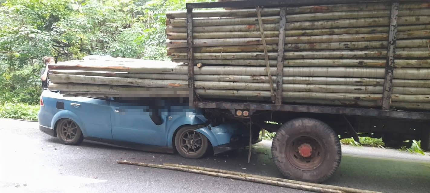 หนุ่มวัย 28 ปีขับรถเก๋ง ชนเข้ากองไม้ที่ยื่นออกจากท้ายรถบรรทุก เสียชีวิตในยานพาหนะ จ.ฉะเชิงเทรา