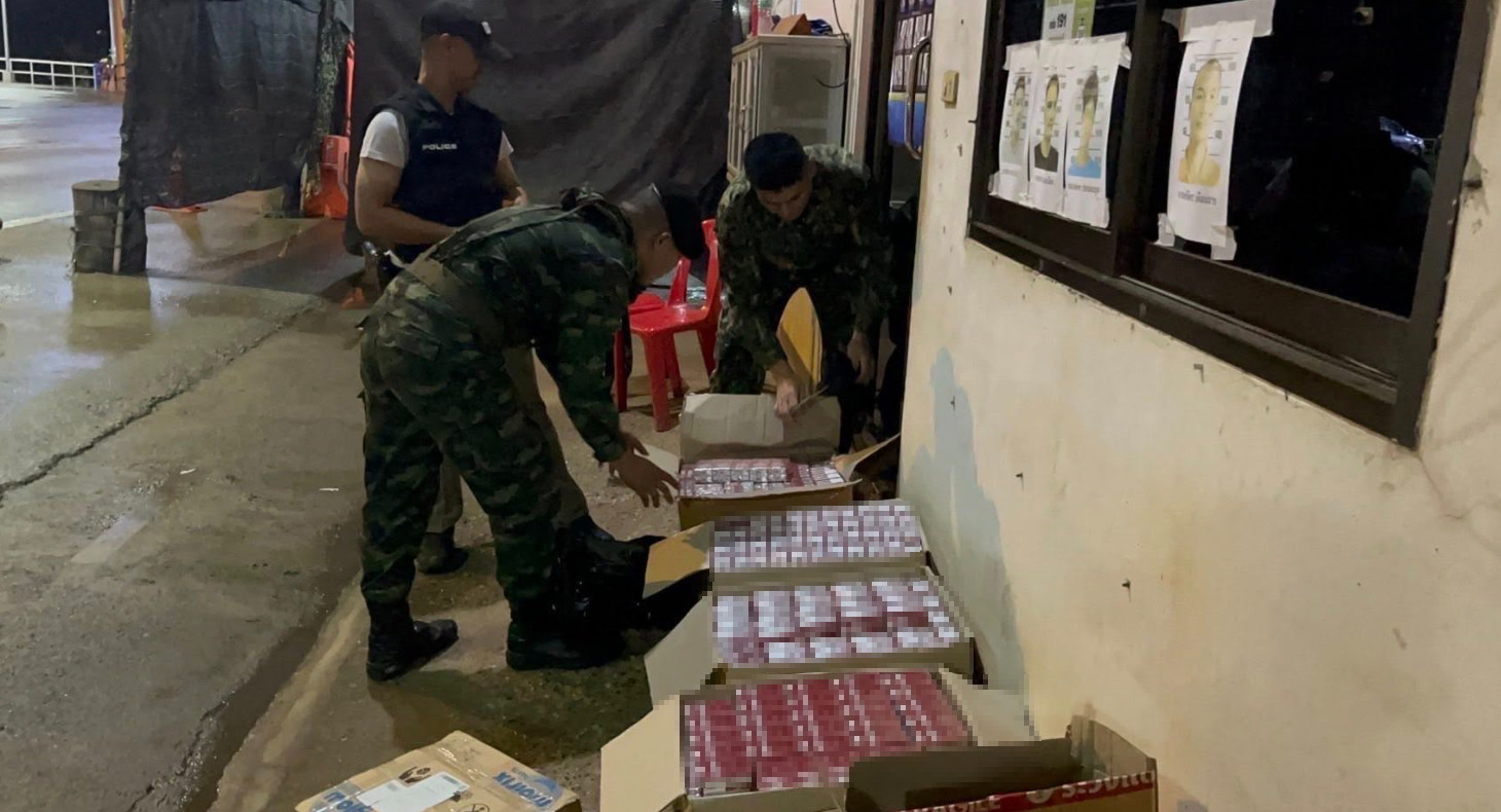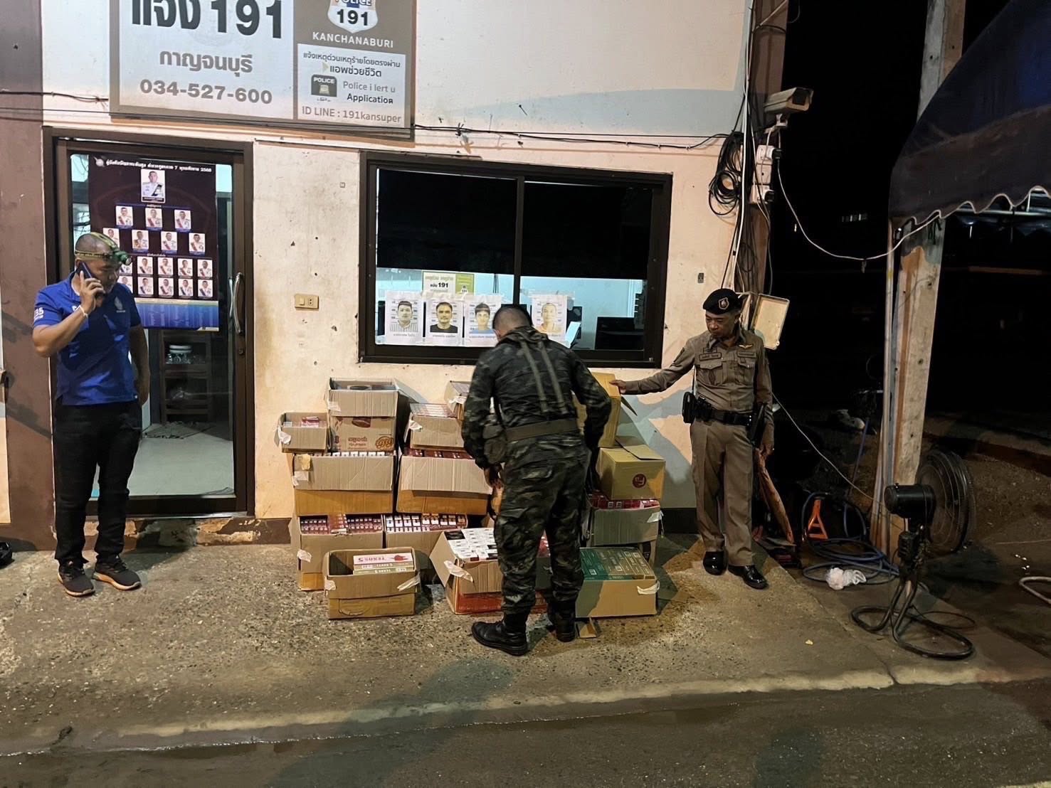 โดยเจ้าหน้าที่ฝ่ายความมั่นคงได้ร่วมกันตั้งจุดตรวจ บริเวณ จุดตรวจร่วมสามแยกทองผาภูมิ ต.ท่าขนุน อ.ทองผาภูมิ จ.กาญจนบุรี ตามเส้นทางที่คาดว่าจะมีการขนสินค้าเลี่ยงภาษีผ่านมา จนกระทั่งพบ รถยนต์ขนส่งพัสดุเอกชน จำนวน 4 คัน ตามที่ได้รับแจ้งจากสายข่าว ขับมาจาก อ.สังขละบุรี มุ่งหน้า อ.เมืองกาญจนบุรี เจ้าหน้าที่ทหารจึงให้สัญญาณขอตรวจค้น พบบุหรี่เลี่ยงภาษีเต็มท้ายกระบะ รวมจำนวนทั้งสิ้น 5,440 ซอง เปรียบเทียบราคาปรับของสรรพสามิต เป็นเงินกว่า 900,000 บาท โดยบรรจุอยู่ภายในกล่องพัสดุ ปะปนมากับพัสดุทั่วไป เพื่อซ่อนเร้นการตรวจสอบจากเจ้าหน้าที่