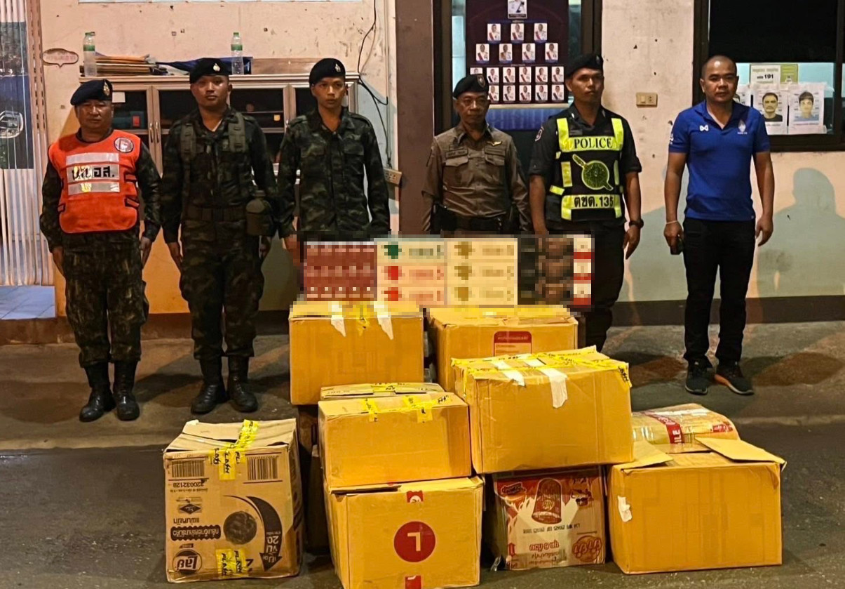 ทหาร ฉก.ลาดหญ้า กกล.สุรสีห์ จับบุหรี่เถื่อนคาด่าน! ทำเนียนปะปนมากับพัสดุทั่วไปหวังตบตาเจ้าหน้าที่แต่ไม่รอด