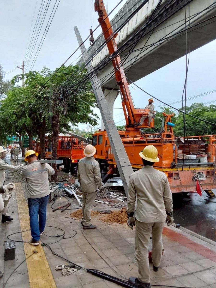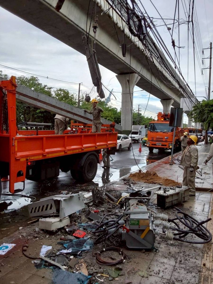 ทั้งนี้ MEA สามารถจ่ายไฟฟ้าในส่วนที่ไม่เกี่ยวข้อง และคาดว่าจะดำเนินการเปลี่ยนเสาไฟฟ้าที่หักชำรุด ปรับปรุงอุปกรณ์ไฟฟ้า และกลับมาเปิดการจราจรทุกช่องทางได้ปกติภายในเวลา 19.00 น. MEA ขออภัยผู้ได้รับผลกระทบมา ณ ที่นี้