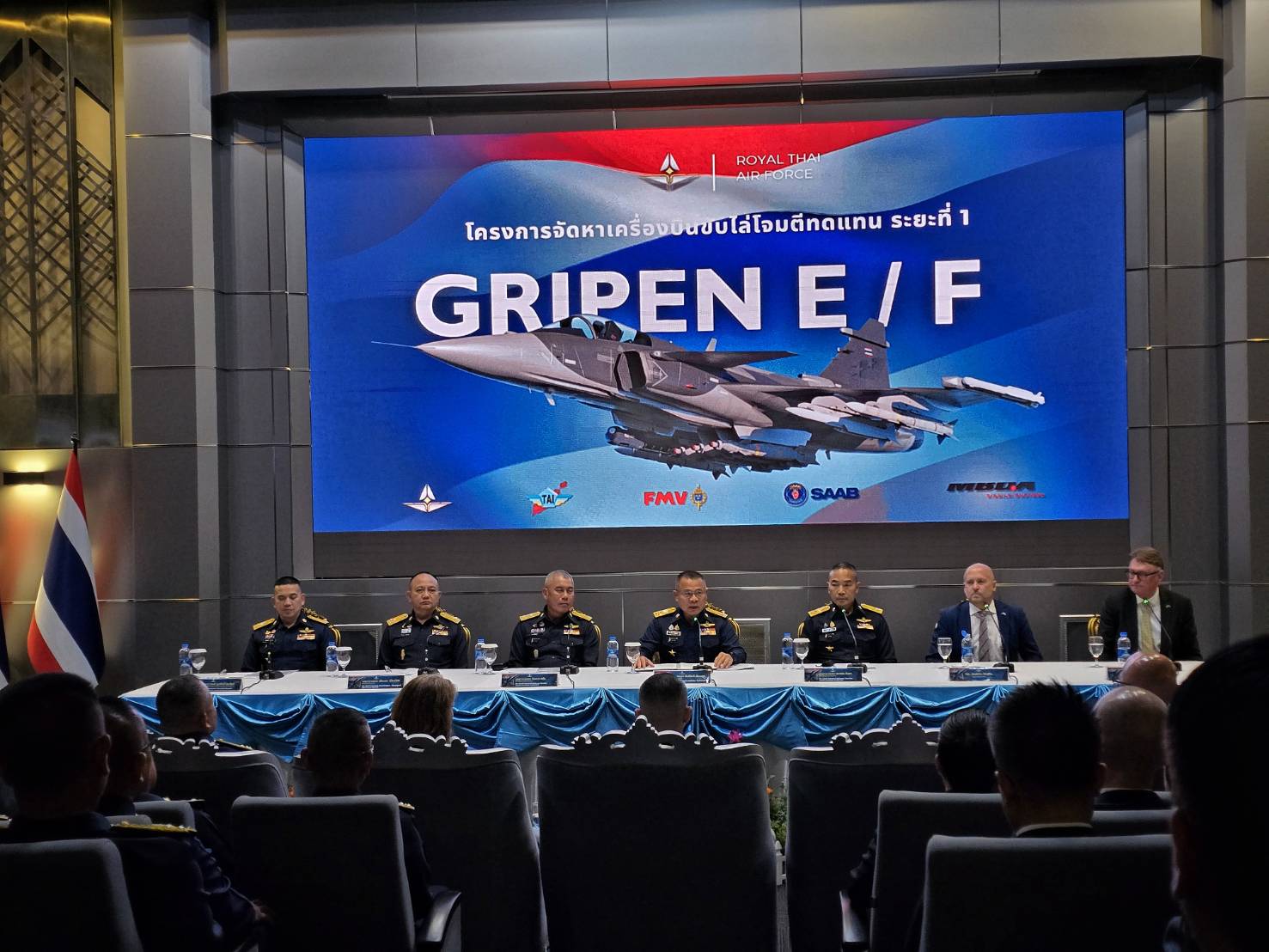 กองทัพอากาศ จัดงานแถลงข่าว โดยผู้บัญชาการทหารอากาศ ในโครงการจัดหาเครื่องบินขับไล่โจมตี เพื่อทดแทนฝูงบิน F-16 ที่ประจำการมานานกว่า 37 ปี ภายใต้แนวคิดเครื่องบินขับไล่โจมตีฝูงใหม่ต้องมีสมรรถนะที่ดีกว่าเครื่องบินขับไล่ที่กองทัพอากาศประจำการ มีความเหมาะสมในด้านคุณสมบัติร่วม และความต่อเนื่อง (Commonality & Continuity) พร้อมเทคโนโลยีที่ทันสมัยพร้อมรับมือต่อภัยคุกคามในยุคปัจจุบันและอนาคต รวมทั้งมีการชดเชยการนำเข้ายุทโธปกรณ์ (Defence Offset) ตามนโยบายรัฐบาลเพื่อพัฒนาสู่การพึ่งพาตนเองอย่างยั่งยืน เสริมสร้างมูลค่าทางเศรษฐกิจ และเพิ่มขีดความสามารถในการแข่งขันของประเทศ กองทัพอากาศได้ดำเนินการพิจารณาตามขั้นตอนและเกณฑ์การเลือกแบบด้วยความละเอียดรอบคอบและโปร่งใส จนได้แบบเครื่องที่ตรงตามความต้องการของกองทัพอากาศในปัจจุบัน ได้แก่ “เครื่องบินขับไล่โจมตีแบบ Gripen E/F” โดยมีแนวทางสำคัญ MIDSR ดังนี้