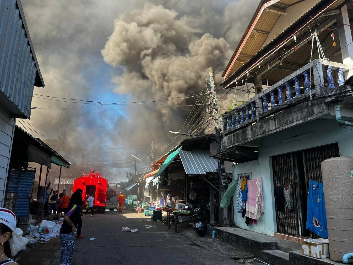 ไฟไหม้โกดังสินค้า กลางตลาดค้าส่งเมืองนครศรีธรรมราช เสียหายทั้งหลังวอดนับล้าน