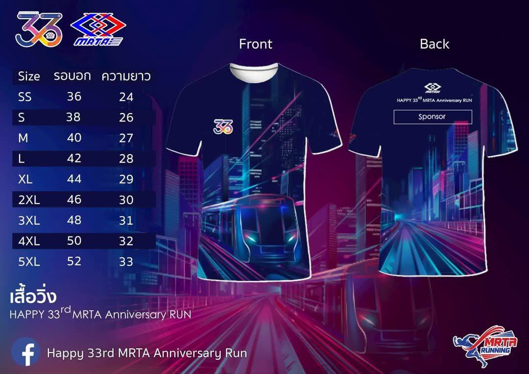 นอกจากนี้ผู้ที่ร่วมกิจกรรมเดิน - วิ่งที่เข้าเส้นชัยทุกคน จะได้รับเหรียญที่ระลึก 1 เหรียญ พร้อมคูปองอาหาร และเครื่องดื่ม 1 ชุด สำหรับผู้ที่เข้าเส้นชัยอันดับ 1-5 จะได้รับบัตรโดยสารรถไฟฟ้า MRT มูลค่า 500 บาท พร้อมของรางวัลพิเศษ อันดับ 6-10 จะได้รับบัตรโดยสารรถไฟฟ้า MRT มูลค่า 500 บาท ผู้ที่สนใจสมัครสามารถติดตามรายละเอียดการรับสมัครและกิจกรรมผ่านเฟซบุ๊ก “Happy 33rd MRTA Anniversary Run” โดยมีค่าใช้จ่ายในการสมัคร 533 บาท/ท่าน เปิดรับสมัครออนไลน์ตั้งแต่วันนี้ ถึง 20 มิถุนายน 2568 สอบถามข้อมูลเพิ่มเติม โทร. 0 2716 4000 ต่อ 1362, 2745 และติดตามข้อมูลข่าวสารของ รฟม. ได้ที่ www.mrta.co.th หรือ Call Center รฟม. โทร. 0 2716 4044