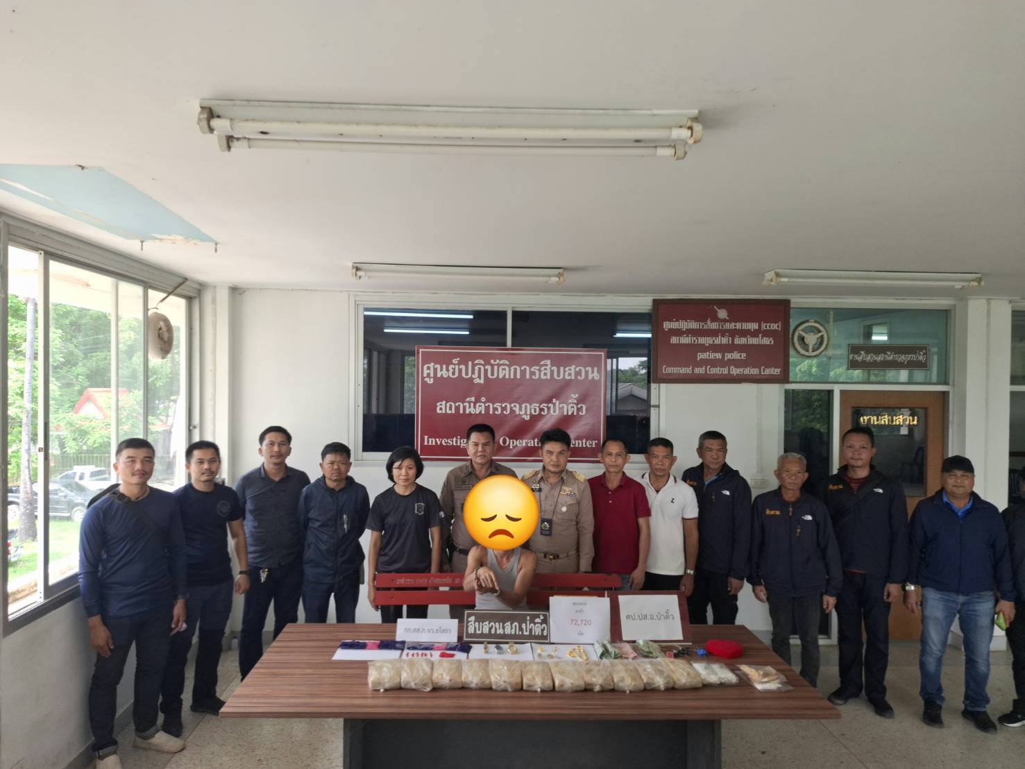 ผลการตรวจค้น พบยาบ้า จำนวน 12 แพ็ก จำนวน 72,720 เม็ด ซุกซ่อนอยู่ภายในหลุมพื้นปูนของบ้าน ซึ่งมีโซฟาทับอยู่ซุกซ่อนอยู่พื้นปูน โดยทับด้วยเสื่อน้ำมันและทับด้วยโซฟาอีกชั้นหนึ่ง และยังสามารถตรวจยึดทรัพย์สิน แห่งประมวลกฎหมายยาเสพติด พ.ศ. 2564 หลายรายการมูลค่า 700,870 บาท ได้แก่