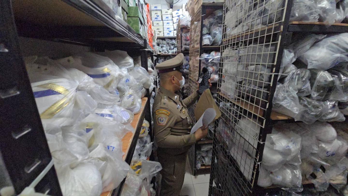 พร้อมตรวจยึดของกลาง รวม 2.610 ชิ้น มูลค่าความเสียหายมากกว่า 10 ล้านบาท โดยมีของกลาง เป็นรองเท้าแบรนด์ต่าง ๆ อาทิเช่น Dior, Louis Vuitton, Hermès, Gucci, Nike, Adidas, New Balance และ Balenciaga