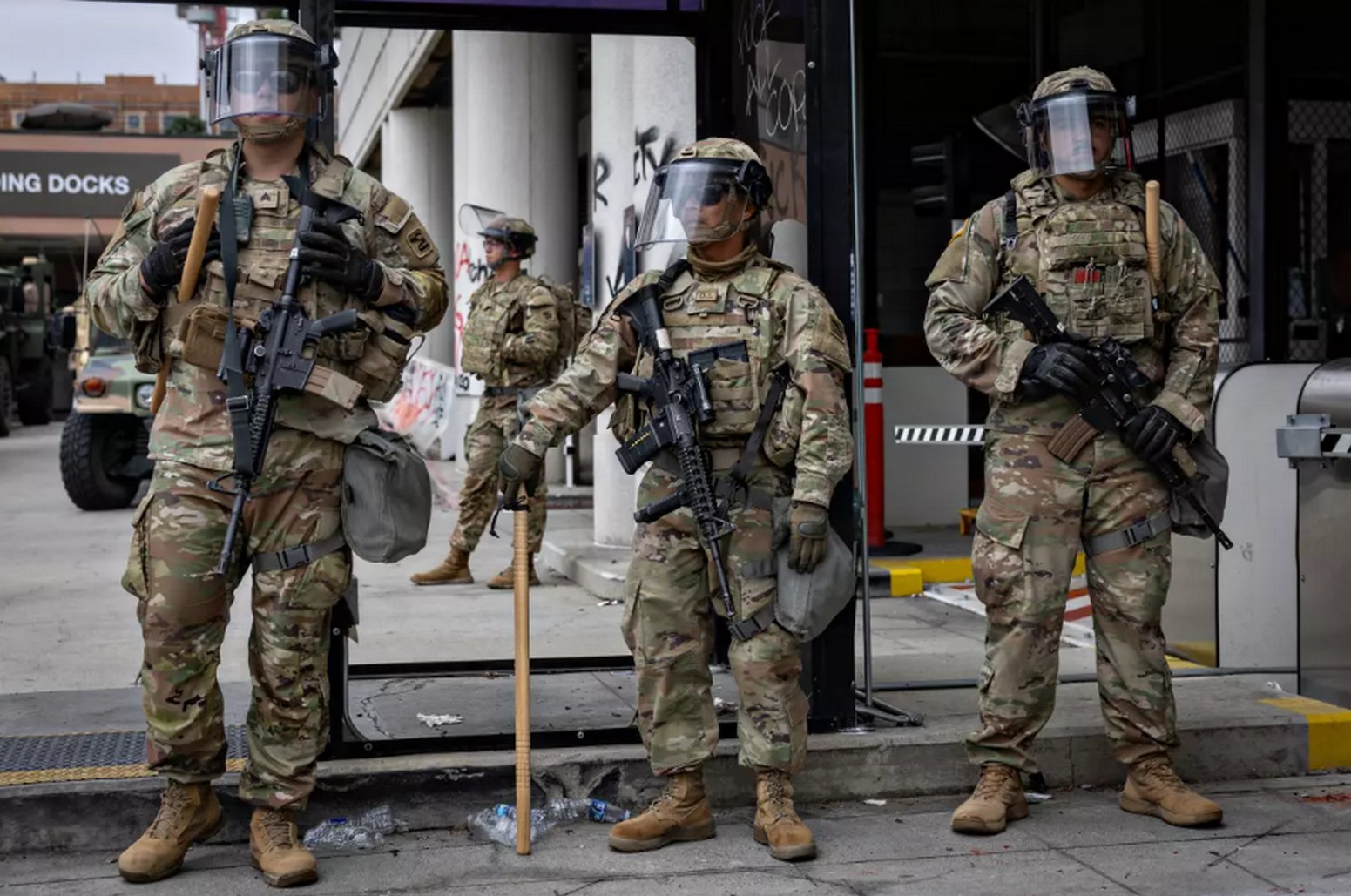 ในขณะที่ผู้คนหลายพันคนรวมตัวกันบนท้องถนนเพื่อประท้วงการบุกจับและจับกุมของสำนักงานตรวจคนเข้าเมืองและศุลกากรของสหรัฐฯ ทรัมป์ได้ระดมกำลังทหารหน่วยป้องกันชาติเกือบ 2,000 นาย เพื่อประท้วงการคัดค้านของผู้ว่าการรัฐแคลิฟอร์เนีย แกวิน นิวซัม ที่กล่าวว่าเจ้าหน้าที่ของรัฐสามารถจัดการสถานการณ์ได้ และทรัมป์กำลังสร้างความวุ่นวายบนท้องถนนเพื่อจุดประสงค์ทางการเมือง