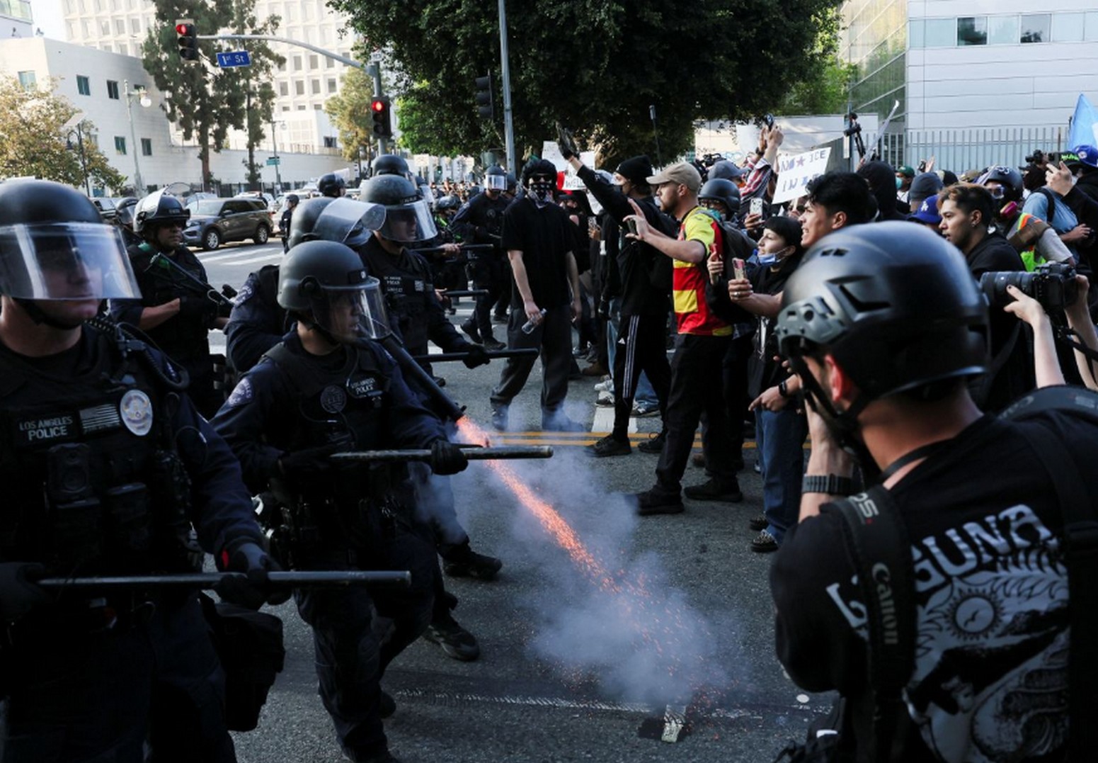 อย่างไรก็ตาม สถานการณ์ในลอสแอนเจลิสเริ่มคลี่คลายลงแล้ว หลังจากที่เจ้าหน้าที่ระบุว่า อาจเป็นคืนที่อันตรายที่สุดคืนหนึ่งในเมือง เนื่องจากพบเห็นตำรวจใช้ระเบิดแสงและแก๊สน้ำตาเพื่อสลายฝูงชนที่บางส่วนจุดไฟเผารถยนต์และก่อจลาจล พร้อมประกาศให้พื้นที่ใจกลางเมืองลอสแอนเจลิสทั้งหมดเป็นพื้นที่ชุมนุมที่ผิดกฎหมาย หลังจากจับกุมผู้ชุมนุมหลายสิบคนช่วงสุดสัปดาห์ที่ผ่านมา