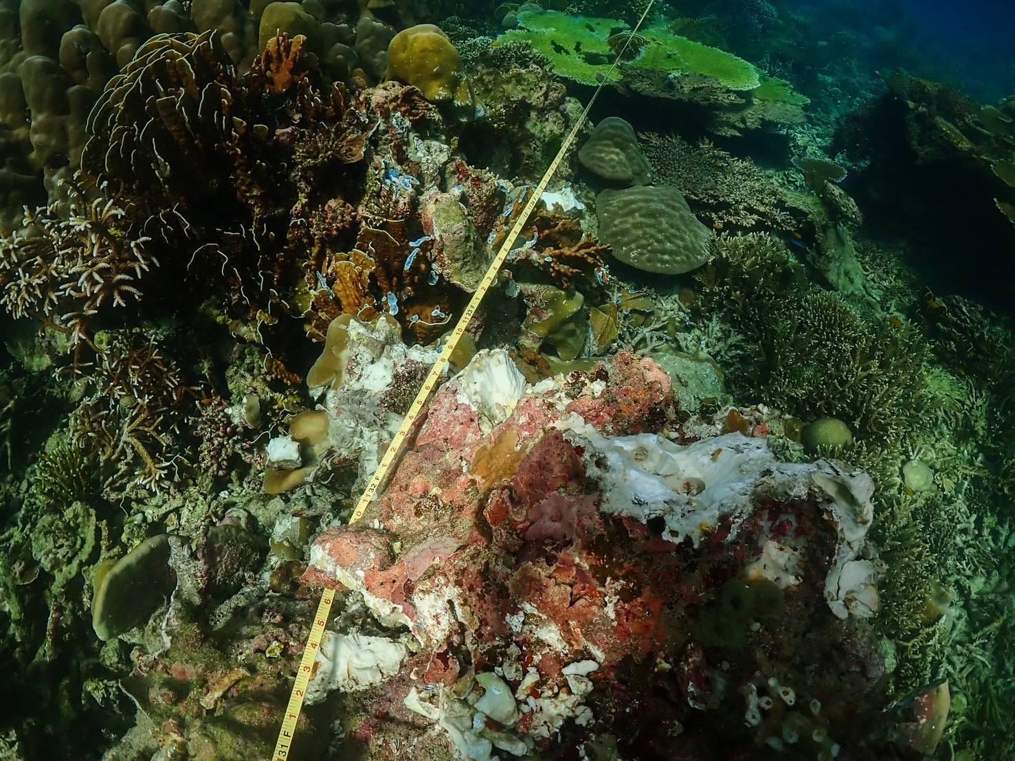 ความเสียหายของแนวปะการัง จากการสำรวจพบว่า ปะการังสีน้ำเงิน (Heliopora coerulea) ซึ่งเป็นชนิดที่หายากและมีความสำคัญต่อระบบนิเวศ ได้รับความเสียหายมากที่สุดถึง 80% ของพื้นที่ที่ได้รับผลกระทบ รองลงมาคือปะการังเขากวาง (Acropora sp.) 15% และปะการังโขด (Porites lutea) 5% โดยจุดที่เสียหายหนักที่สุดคือบริเวณที่เรือเกยตื้นและทับแนวปะการังโดยตรง