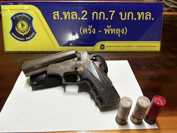 11 มิ.ย.68 กองบังคับการตำรวจทางหลวง จับกุมผู้ต้องหา2ราย หลังตั้งจุดตรวจป้องกันปราบปราม หน้าหน่วยบริการประชาชนตำรวจทางหลวงพัทลุง ทล.41 กม.376-377 ต.แพรกหา อ.ควนขนุน จ.พัทลุง โดยจับกุมนายวี(นามสมมุติ) อายุ 54 ปี ฐาน “พกพาอาวุธปืนติดตัวไปในเมือง หมู่บ้าน หรือทางสาธารณะโดยไม่ได้รับอนุญาต และไม่มีเหตุอันควรจำเป็นอันเร่งด่วนหรือสมควรแก่พฤติการณ์" พร้อมของกลาง 1. อาวุธปืนสั้น ชนิดลูกโม่ 1 กระบอก 2. เครื่องกระสุนปืนขนาด .357 จำนวน 6 นัด 3. ซองพกในแบบหนังสีดำ จำนวน 1 ซอง ส่วนอีกราย จับกุมนายสุ(นามสมมุติ) อายุ 20 ปี ฐาน “มีอาวุธปืนและเครื่องกระสุนปืนไว้ในครอบครองโดยไม่ได้รับอนุญาต และพกพาอาวุธปืนติดตัวไปในเมือง หมู่บ้าน หรือทางสาธารณะโดยไม่ได้รับอนุญาต และไม่มีเหตุอันควรจำเป็นอันเร่งด่วนหรือสมควรแก่พฤติการณ์” พร้อมตรวจยึดของกลาง