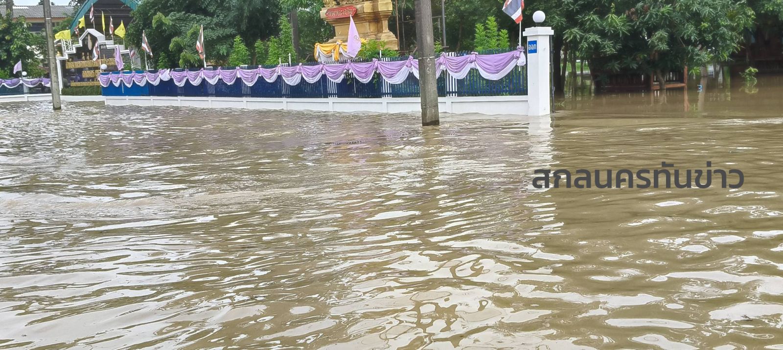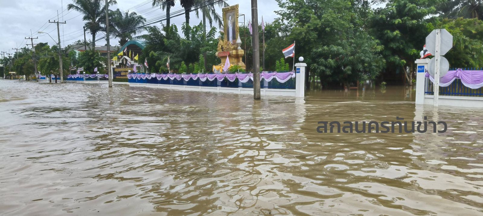 เพจเฟซบุ๊กสกลนครทันข่าว รายงานล่าสุด 13 มิ.ย.2568 เวลา 16.00 น. เส้นทางถนนนิตโย บริเวณช่วงหน้า โรงเรียนธาตุนารายณ์วิทยา อ.เมือง สกลนคร มีสถานการณ์น้ำท่วมสูง เนื่องจากพื้นที่ฝนตกหนักต่อเนื่อง นำจากลำห้วยทรายเอ่อไหลเข้าท่วมถนน ส่งผลให้การจราจรบนถนนนิตโย เส้นทางตัวเมือง-อ.พรรณานิคม สัญจรได้ลำบาก โดยมีเจ้าหน้าที่ตำรวจราจรลงพื้นที่ จัดการจราจรให้รถวิ่งเลนขวาสุด แนะรถยนต์ขนาดเล็กหลีกเลี่ยงเส้นทางดังกล่าว