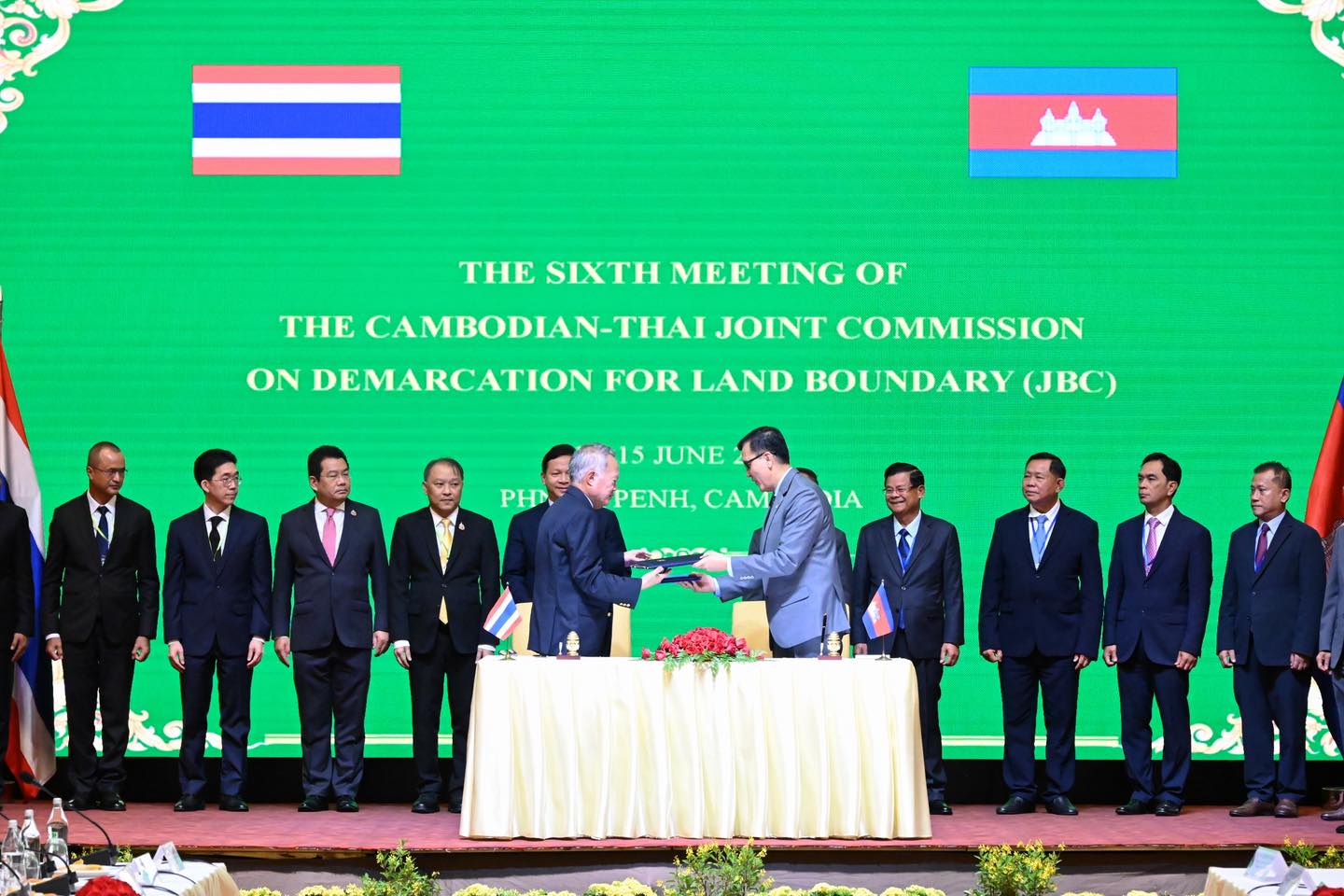 เมื่อวันที่ 15 มิถุนายน 2568 เอกอัครราชทูตประศาสน์ ประศาสน์วินิจฉัย ประธานคณะกรรมาธิการเขตแดนร่วมไทย-กัมพูชา ฝ่ายไทย และนายฬำ เจีย รัฐมนตรีรับผิดชอบกิจการชายแดนและหัวหน้าสำนักงานเลขาธิการกิจการชายแดนแห่งชาติกัมพูชา ประธานร่วมฝ่ายกัมพูชา เป็นประธานร่วมในพิธีปิดการประชุมคณะกรรมาธิการเขตแดนร่วมไทย-กัมพูชา ครั้งที่ 6 (JBC) และลงนามบันทึกการประชุมร่วมกัน ที่กรุงพนมเปญ