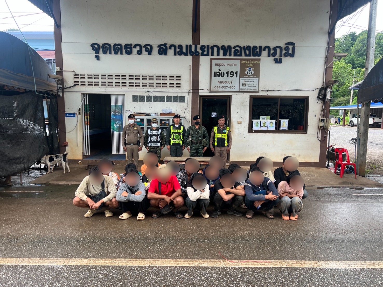 เมื่อเวลา 08.30 น. ขณะที่เจ้าหน้าที่ฝ่ายความมั่นคงกำลังร่วมกันซุ่มเฝ้าตรวจ บริเวณ สวนยางพารา บ้านเกริงกระเวีย ม.2 ต.ชะแล อ.ทองผาภูมิ สังเกตพบกลุ่มบุคคลลักษณะคล้ายต่างด้าวจำนวน 24 คน (ชาย 22 คน และหญิง 2 คน) จึงได้แสดงตนเป็นเจ้าหน้าที่ เพื่อทำการตรวจสอบเอกสารประจำตัวที่ทางราชการออกให้ แต่กลุ่มบุคคลดังกล่าวไม่สามารถสื่อสารภาษาไทยได้ และไม่สามารถแสดงเอกสารที่ทางราชการออกให้ได้ เจ้าหน้าที่จึงควบคุมตัวกลุ่มบุคคลต่างด้าวดังกล่าวไว้ทั้งหมด