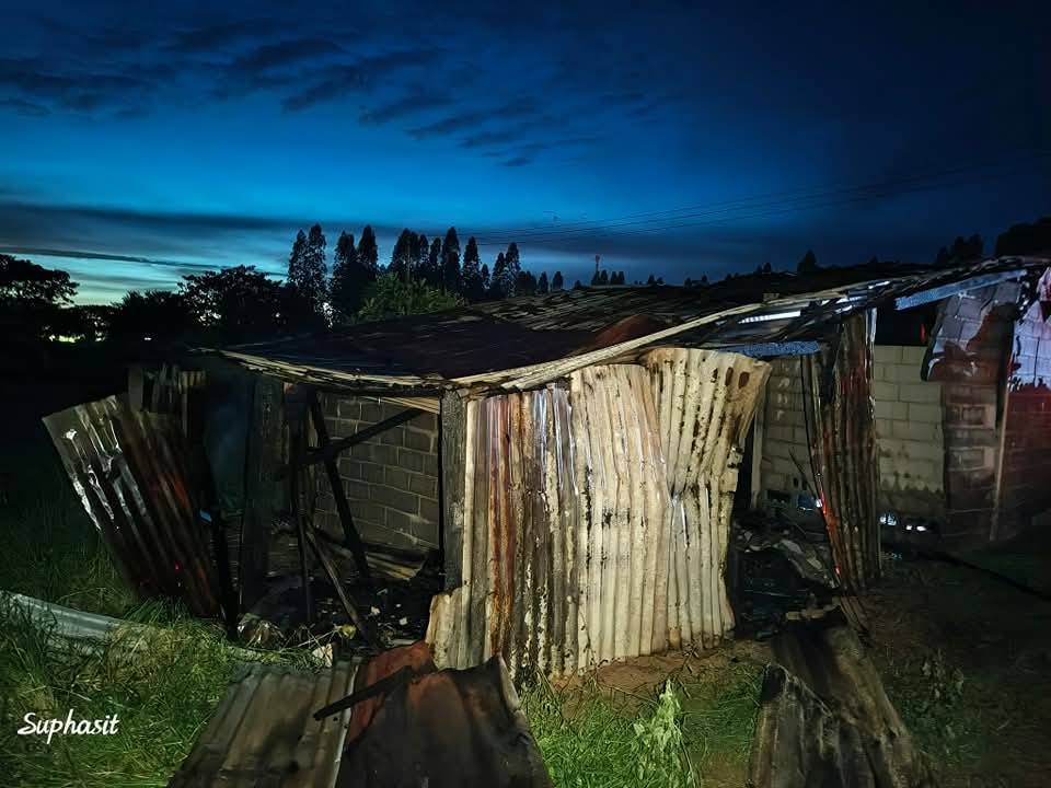 คนคลั่ง จุดไฟเผาบ้าน เสียหายวอดหมดทั้งหลัง ที่อำเภอสมเด็จ จังหวัดกาฬสินธุ์