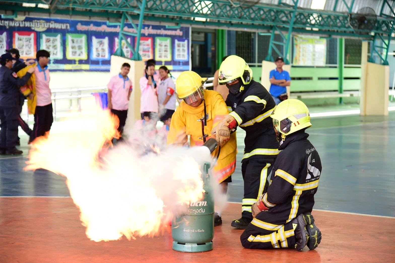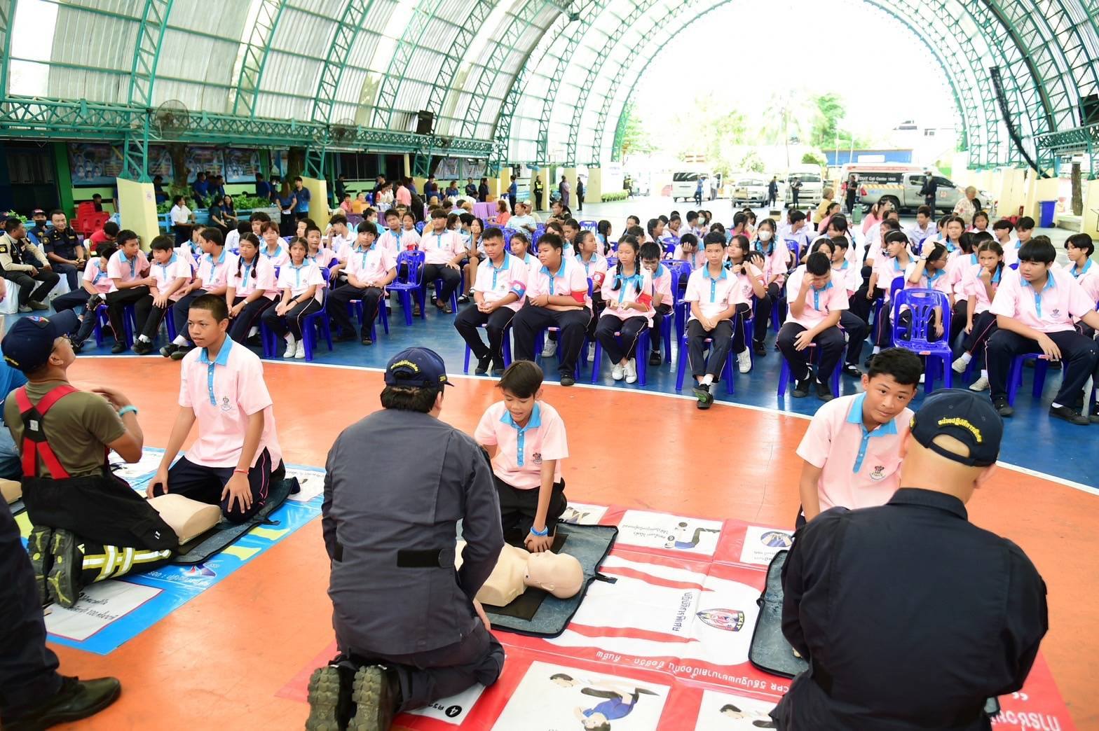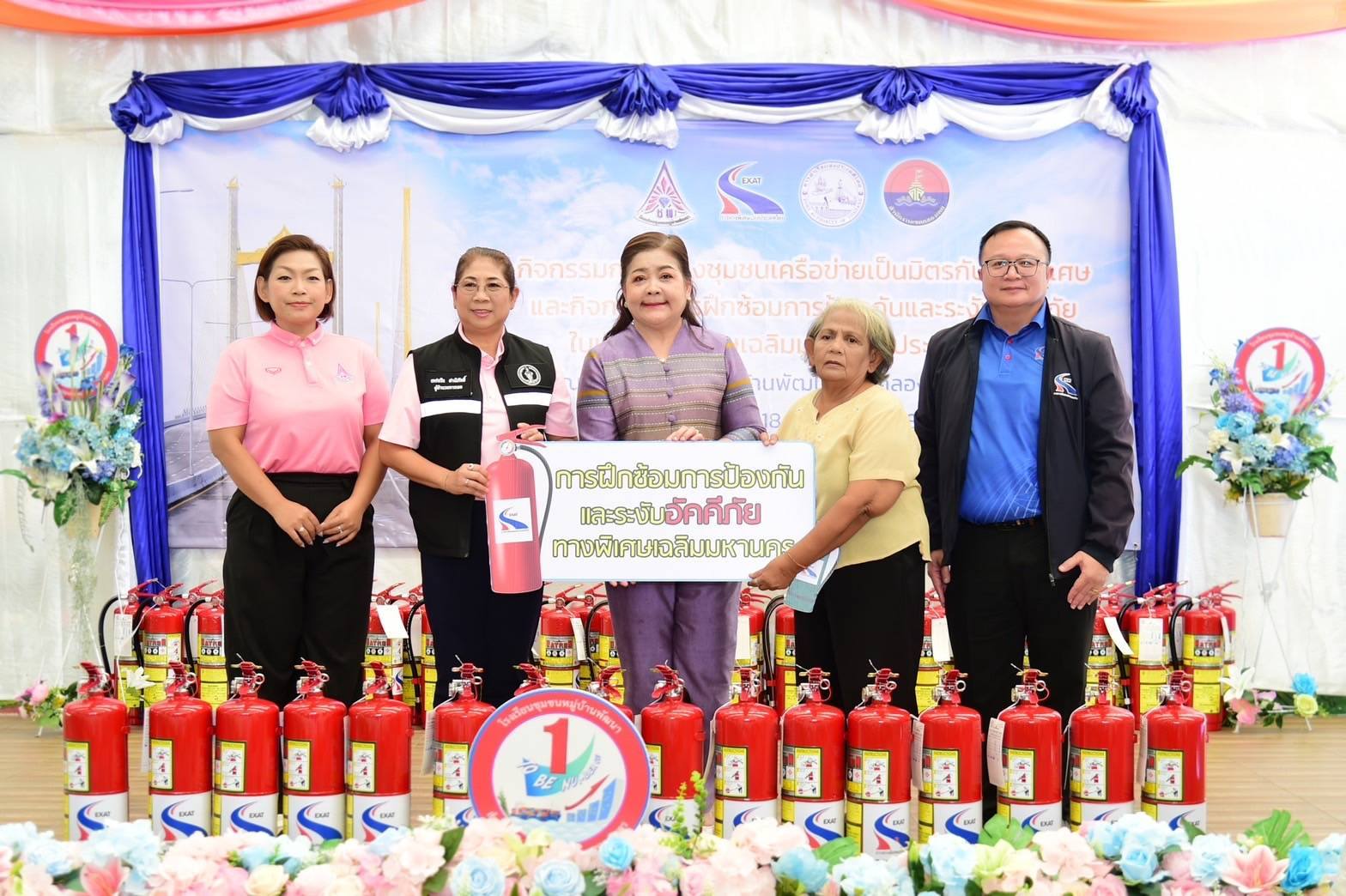 ในวันนี้ ได้รับความร่วมมือจาก โรงเรียนชุมชนหมู่บ้านพัฒนา ชุมชนคลองเตยล็อค 1-2-3 ชุมชนคลองเตยล็อค 4-5-6 ชุมชนน้องใหม่ ชุมชนร่มเกล้า ชุมชนหัวโค้ง ชุมชนริมคลองพระโขนง (โรงฟอกหนัง) และชุมชนริมทางรถไฟสายปากน้ำเก่า เข้าร่วมกิจกรรมการฝึกซ้อมป้องกันและระงับอัคคีภัย ซึ่ง กทพ. ต้องขอขอบคุณชุมชนต่าง ๆ ที่ให้ความร่วมมือเป็นอย่างดีมาโดยตลอด สำหรับกิจกรรมในครั้งนี้ กทพ. ได้จัดให้ความรู้วิธีการดับเพลิง การฝึกซ้อมขั้นตอนอพยพกรณีเกิดเหตุเพลิงไหม้ การปฐมพยาบาลเบื้องต้น การช่วยฟื้นคืนชีพ (First Aid & CPR) ให้กับชาวชุมชนรอบเขตทางพิเศษ ในการป้องกันและระงับอัคคีภัยรวมถึงให้ความช่วยเหลือในกรณีเกิดอัคคีภัย พร้อมทั้งได้มอบถังดับเพลิงให้กับโรงเรียนชุมชนหมู่บ้านพัฒนา จำนวน 20 ถัง พร้อมอุปกรณ์กีฬา 1 ชุด และยังได้ มอบถังดับเพลิงให้กับชุมชนต่าง ๆ ที่เข้าร่วมกิจกรรมการฝึกซ้อมการป้องกันและระงับอัคคีภัยในวันนี้ จำนวนชุมชนละ 10 ถัง รวมจำนวนทั้งสิ้น 90 ถัง อีกด้วย