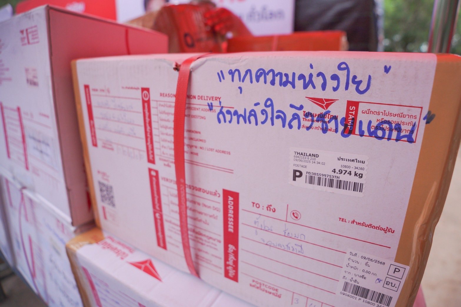 กรุงเทพฯ 19 มิถุนายน 2568 - บริษัท ไปรษณีย์ไทย จำกัด เดินหน้าส่งความห่วงใยจากชาวไทย สู่ทหารที่ปฏิบัติหน้าที่บริเวณชายแดนไทย-กัมพูชา จังหวัดอุบลราชธานี โดยได้ส่งมอบสิ่งของอุปโภคบริโภค ที่มาจากน้ำใจคนไทยทั่วประเทศรวมจำนวนกว่า 1,000 กล่อง ส่งต่อให้กับเจ้าหน้าที่ทหาร ณ ฐานปฏิบัติการ ช่องบก อ.น้ำยืน จ.อุบลราชธานี โดยมีพันเอกสุรกิจ กาฬเนตร ผู้บังคับหน่วยเฉพาะกิจที่ 1 กองกำลังสุรนารี เป็นผู้รับมอบ ภายใต้กิจกรรม “ทุกความห่วงใย...ส่งพลังใจถึงชายแดน” ทั้งนี้ ยังเปิดโอกาสให้ประชาชนได้ส่งสิ่งของผ่านบริการไปรษณีย์ไทยโดยไม่เสียค่าใช้จ่าย เพียงจ่าหน้าถึง “ตู้ ปณ.ช่องบก จ.อุบลราชธานี 34260” ตั้งแต่วันนี้ – 30 มิถุนายน 2568