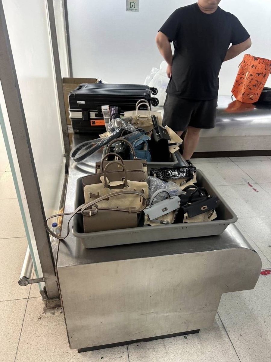 ชุดสืบสวนปราบปรามของ บก.ตม.2 สามารถติดตามและควบคุมตัว ชายชาวจีน ได้ภายในสนามบินสุวรรณภูมิ พร้อมของกลางกว่า 20 รายการ ประกอบด้วยกระเป๋าถือสุภาพสตรี ยี่ห้อแอร์เมส 14 ใบ, สร้อยข้อมือแบรนด์ Van Cleef & Arpels 2 เส้น และเงินสดหลากหลายสกุล รวมมูลค่าทรัพย์สินทั้งหมดกว่า 10 ล้านบาท