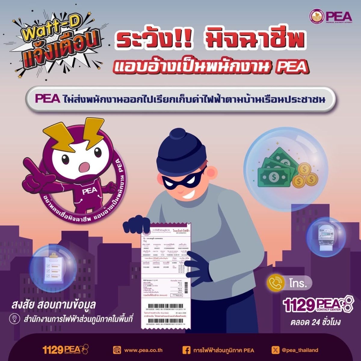 Watt-D แจ้งเตือน ระวัง!! มิจฉาชีพ แอบอ้างเป็นพนักงาน PEA