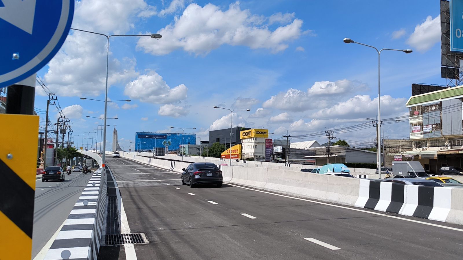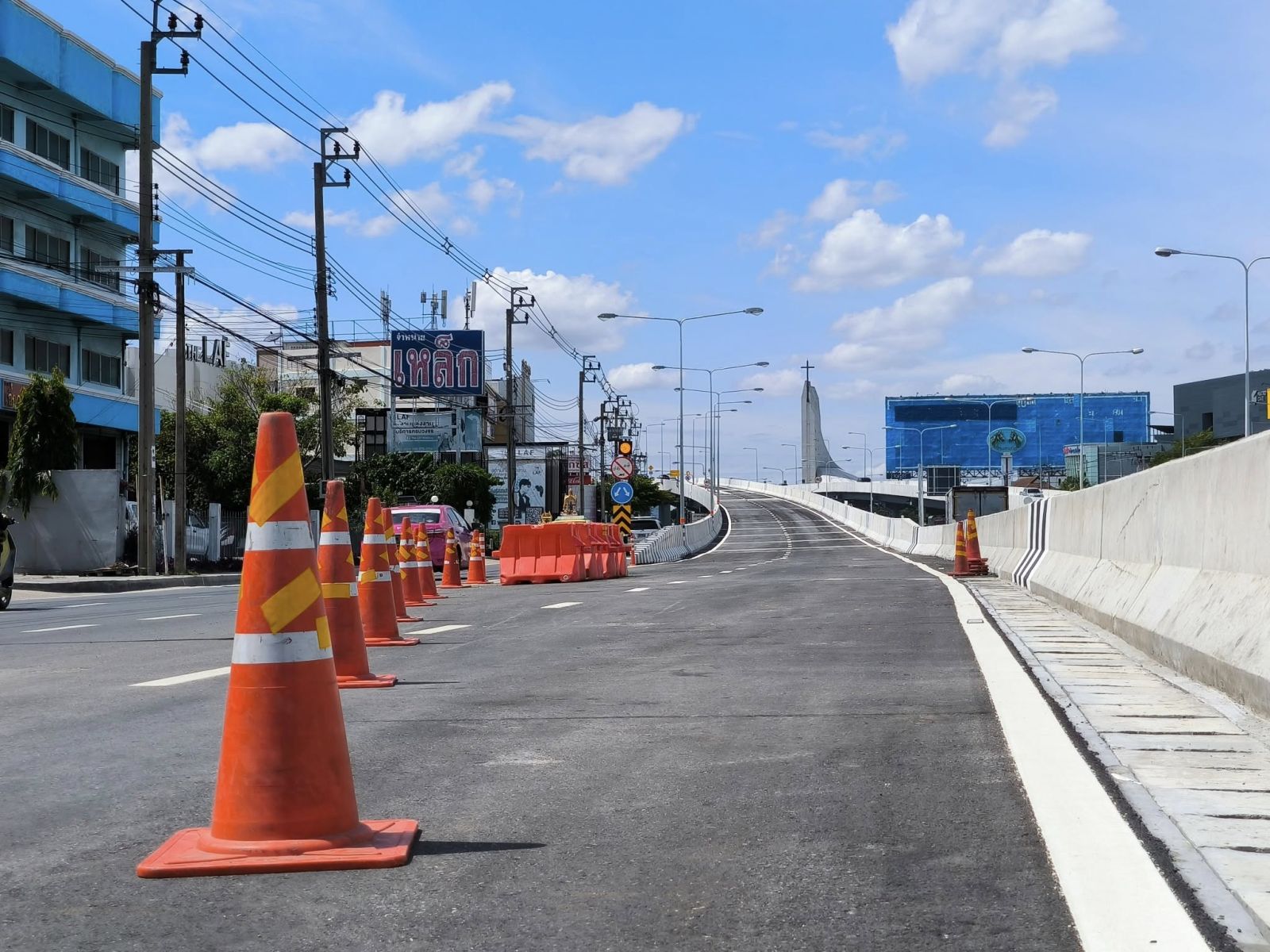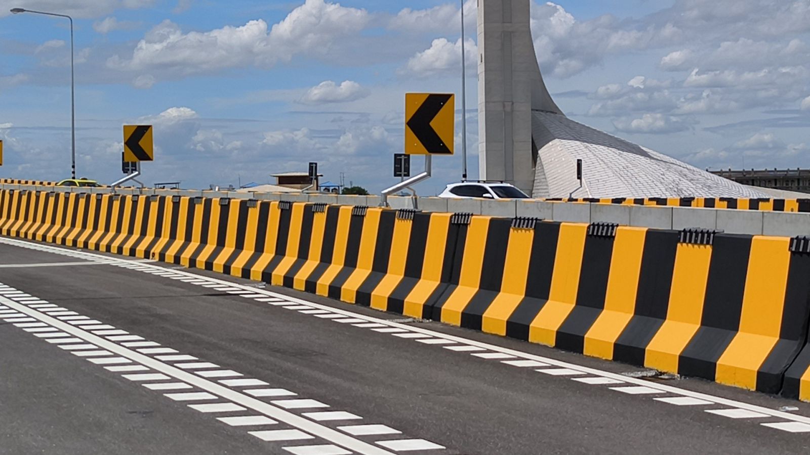 ทั้งนี้ โครงการดังกล่าว มีจุดเริ่มต้นโครงการ กม.ที่ 12+850 และสิ้นสุด กม.ที่ 15+100 มีรูปแบบสะพานเหล็กขนาด 2 ช่องจราจรต่อทิศทาง (ไป – กลับ) กว้าง 8.50 เมตร ฝั่งขาเข้ากรุงเทพฯ มีความยาว 2.10 กิโลเมตร และฝั่งขาออกกรุงเทพฯ มีความยาว 1.90 กิโลเมตร รวมทั้งมีงานก่อสร้างระบบระบายน้ำ ระบบไฟฟ้าแสงสว่าง และงานเบ็ดเตล็ด ใช้งบประมาณในการก่อสร้าง 1,181.515 ล้านบาท ปัจจุบันได้ดำเนินการเสร็จสมบูรณ์และเปิดให้ประชาชนได้ใช้สัญจรเป็นที่เรียบร้อยแล้ว