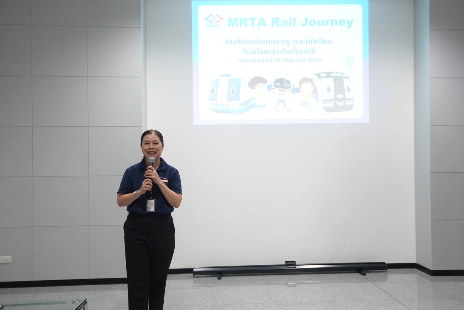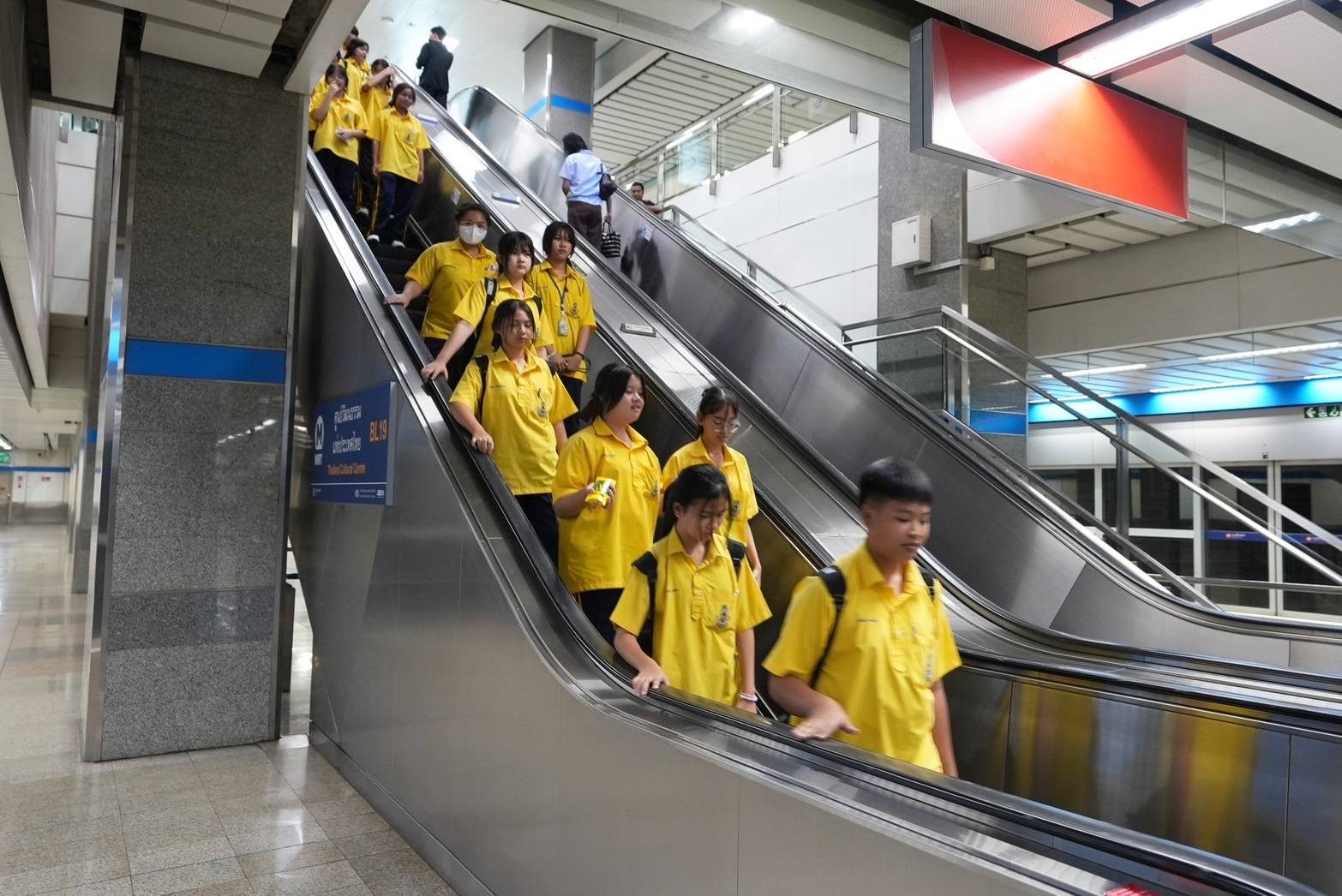 การรถไฟฟ้าขนส่งมวลชนแห่งประเทศไทย (รฟม.) จัดกิจกรรม MRTA Rail Journey โดยมี นางสาวจิรฐา วัฒนประดิษฐ์ ผู้อำนวยการสำนักสื่อสารองค์กร รฟม. ให้การต้อนรับและนำคณะครูและนักเรียนโรงเรียนสุรศักดิ์มนตรี ซึ่งเป็นโรงเรียนตามแนวสายทางโครงการรถไฟฟ้าสายสีส้ม ช่วงบางขุนนนท์ – ศูนย์วัฒนธรรมแห่งประเทศไทย ทดลองโดยสารรถไฟฟ้ามหานคร สายเฉลิมรัชมงคล (MRT สายสีน้ำเงิน) จากสถานีรถไฟฟ้าศูนย์วัฒนธรรมแห่งประเทศไทยมายังสถานีรถไฟฟ้าลาดพร้าว และเยี่ยมชมศูนย์การเรียนรู้ด้านรถไฟฟ้าขนส่งมวลชน (MRTA Learning Center) ซึ่งจัดแสดงข้อมูลเกี่ยวกับประวัติความเป็นมา ขั้นตอนและกระบวนการดำเนินงาน เทคนิคการออกแบบและก่อสร้าง เทคโนโลยีการเดินรถและซ่อมบำรุง การพัฒนาของระบบขนส่งมวลชนในประเทศไทย และการจําลองระบบขนส่งมวลชน พร้อมทั้งชมการแสดงสุนัขตรวจค้นพัสดุภัณฑ์ระเบิด (K-9) จากฝ่ายรักษาความปลอดภัยและกู้ภัย รฟม.