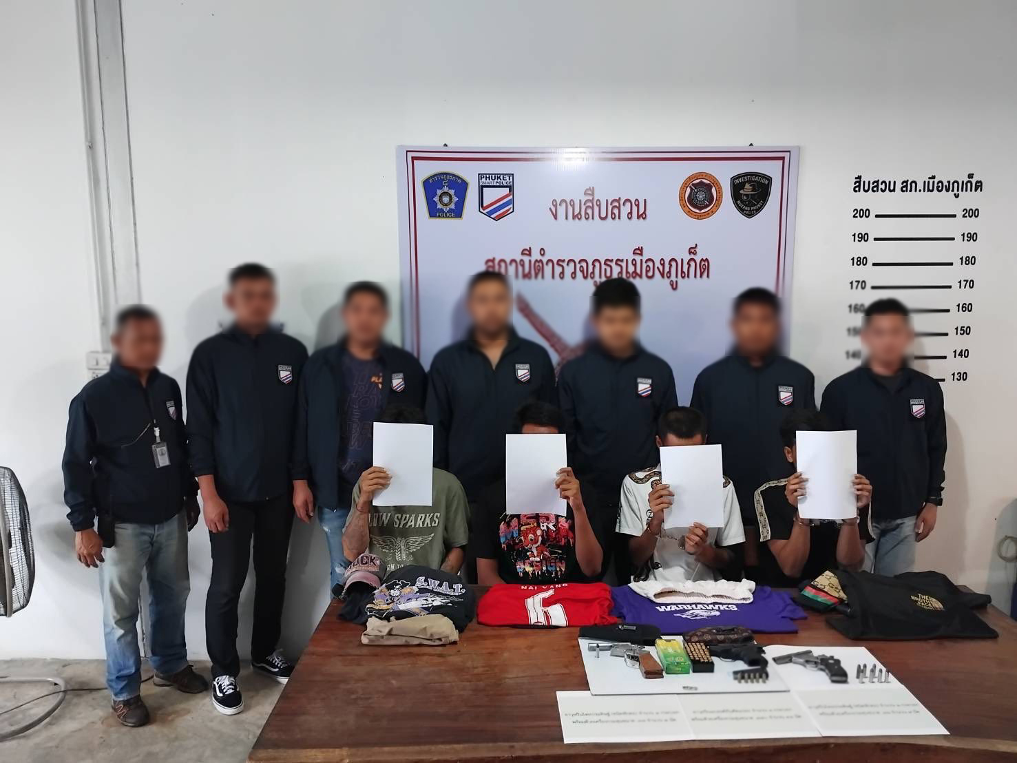 ต่อมา วันที่ 21มิ.ย.68 เจ้าหน้าที่ตำรวจชุดสืบสวน สภ.เมืองภูเก็ต นำโดย พ.ต.ต.กันต์ อักษรทอง สว.สส.สภ.เมืองภูเก็ต และ เจ้าหน้าที่ชุดสืบสวนสภ.เมืองภูเก็ต ได้นำหมายจับทำการจับกุมตัวผู้ก่อเหตุได้ทั้งหมด 4 ราย จากนั้นได้นำหมายค้นไปตรวจค้นบ้านผู้ต้องหาในพื้นที่ อ.กะทู้ ผลการตรวจพบ อาวุธปืนไทยประดิษฐ์จำนวน 2 กระบอก อาวุธปืนแบลงค์กันดัดแปลงจำนวน 1 กระบอก เครื่องกระสุนชนิด .38 จำนวน 2 นัด เครื่องกระสุนชนิด .380 จำนวน 48 นัด รถจักรยานยนต์ที่ใช้ขับขี่ไปก่อเหตุ 2 คัน เสื้อผ้าของผู้ต้องหาที่สวมใส่ขณะก่อเหตุ