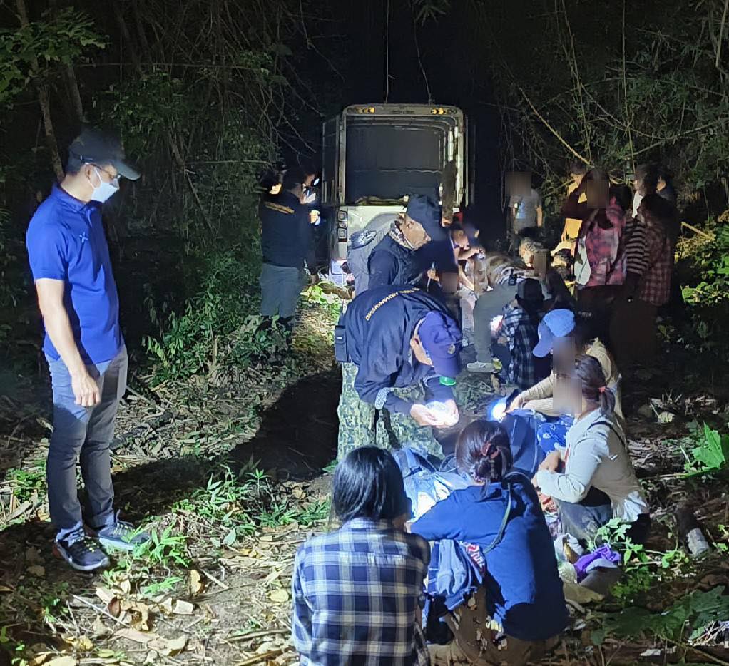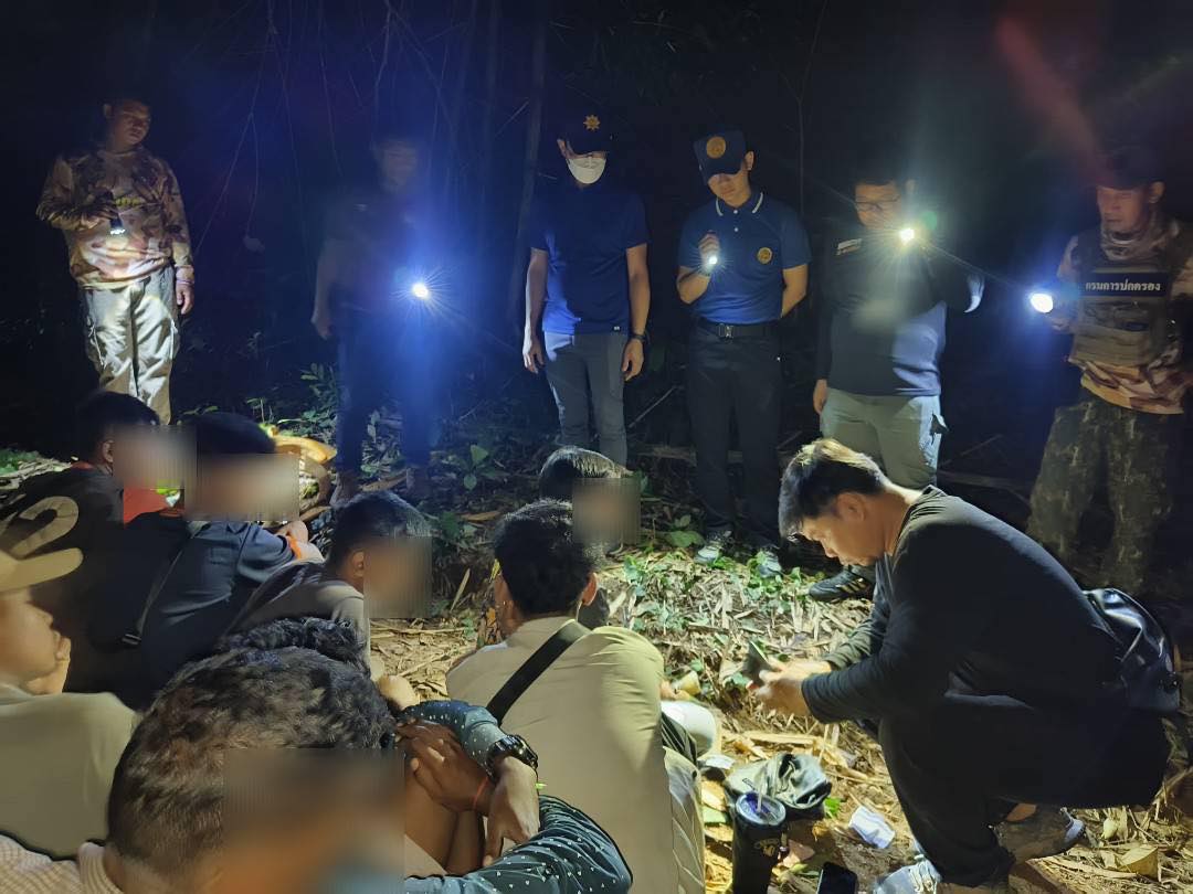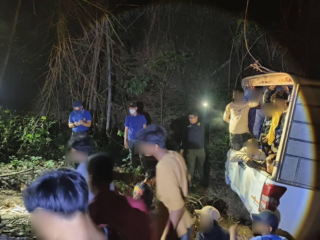 วันจันทร์ที่ 23 มิถุนายน 2568 เวลา 03.50 น. ณ บริเวณสามแยกทองผาภูมิกลับรถมาเวียนทองผาภูมิ เข้าถนนเสาหงษ์ หมู่ที่ 2 ตำบลท่าขนุน อำเภอทองผาภูมิ จังหวัดกาญจนบุรี นายชาคริต ตันพิรุฬห์ นายอำเภอทองผาภูมิ นายกฤษฎา มูลสวัสดิ์ ปลัดอำเภอหัวหน้ากลุ่มงานบริหารงานปกครอง นายยงยุทธ แสวงสุข ปลัดอำเภอ สมาชิกกองอาสารักษาดินแดนอำเภอทองผาภูมิที่ 9 ร่วมกับผู้ปกครองท้องที่ จับกุมผู้ลักลอบหลบหนีเข้าเมืองโดยผิดกฎหมาย จำนวน 41 ราย และผู้นำพาฯ จำนวน 1 ราย