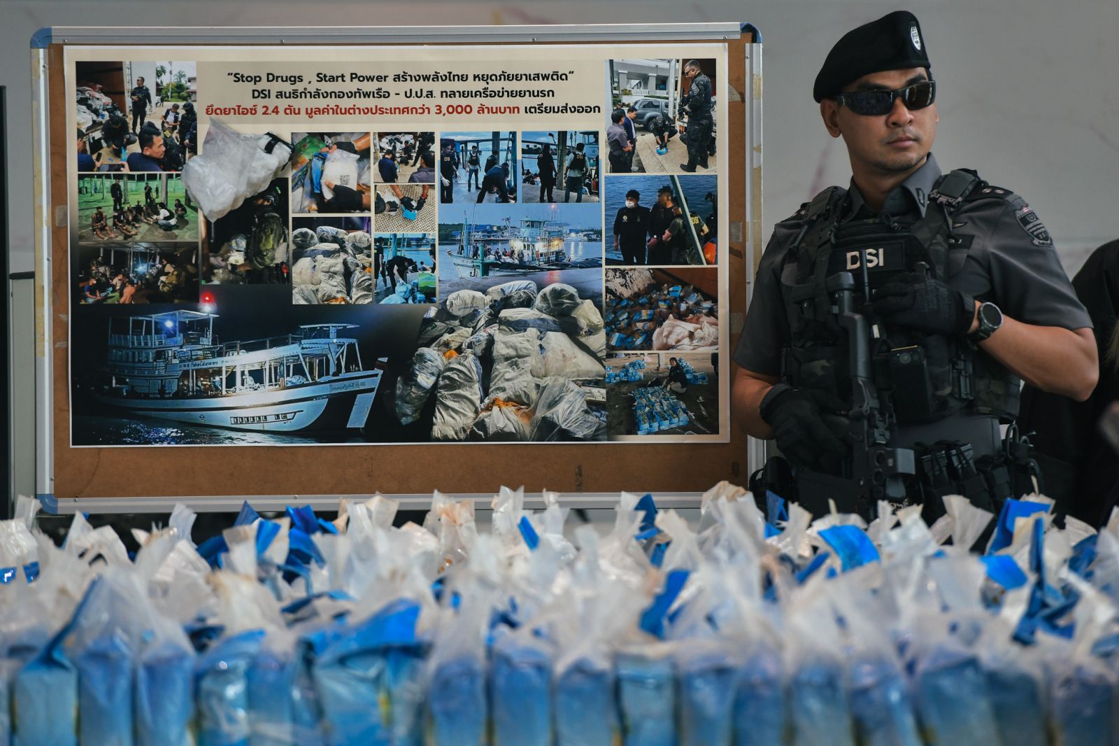 กระทรวงยุติธรรม โดย ดีเอสไอ สนธิกำลังกองทัพเรือ - ป.ป.ส. ทลายเครือข่ายยานรก ยึดยาไอซ์ 2.4 ตัน มูลค่าในต่างประเทศกว่า 3,000 ล้านบาท เตรียมส่งออก