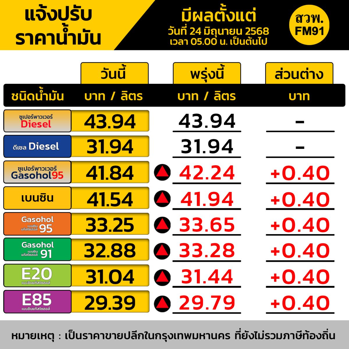 มีผลวันที่ 24 มิ.ย. 68 ตั้งแต่ เวลา 05.00 น. เป็นต้นไป