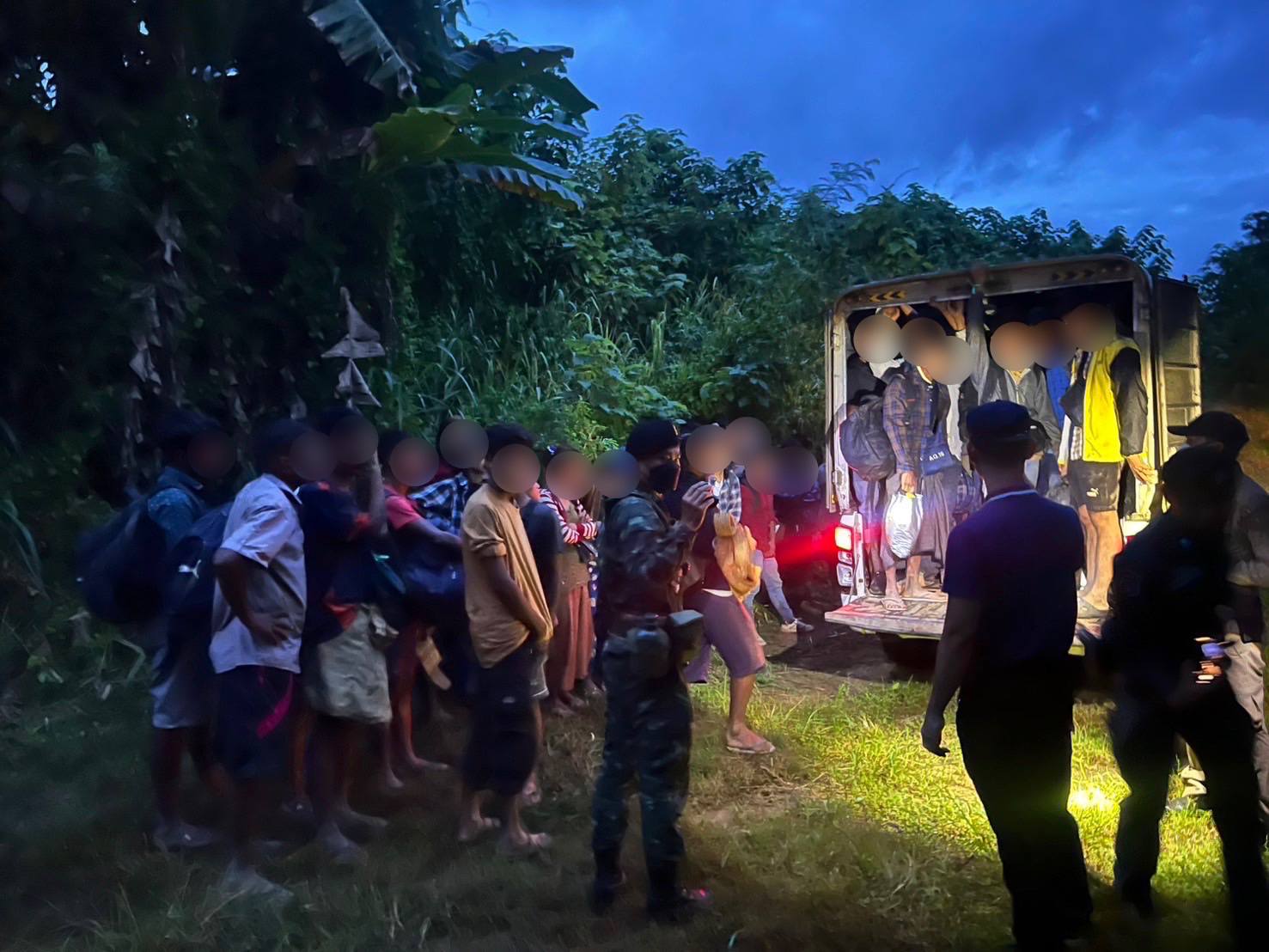 ทหาร ฉก.ลาดหญ้า กกล.สุรสีห์ สกัดจับแรงงานเถื่อนซุกกระบะตู้ทึบกว่าครึ่งร้อยชีวิต